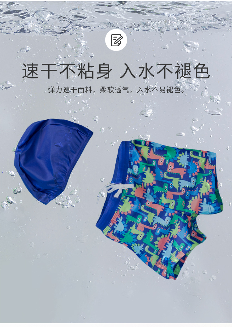 贝贝怡宝宝泳衣套装儿童泳裤男童泳帽中小童泳装两件套速干游泳裤222P2450