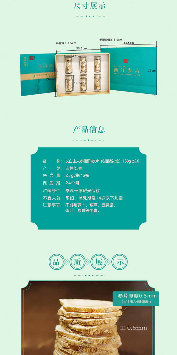长白山人参 西洋参片 (6瓶装礼盒)150g【LXDWYY5.0】