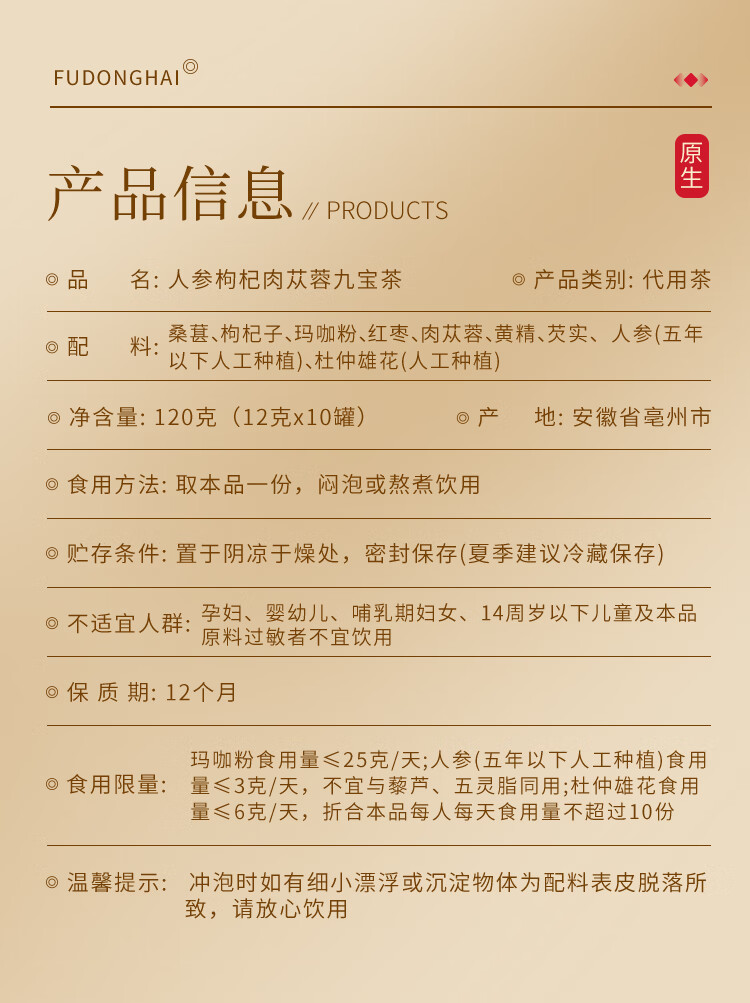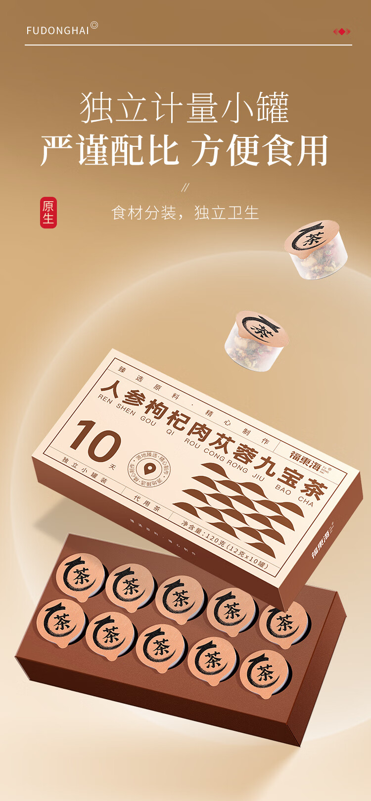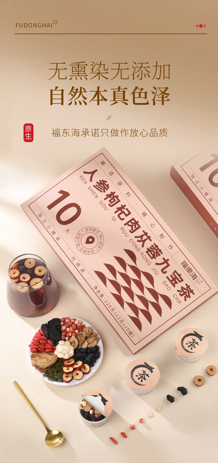 福东海 人参枸杞肉苁蓉九宝茶120克 养生茶八宝茶红枣桂圆黑桑葚