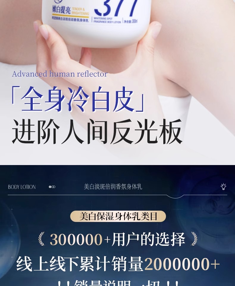 【抹1天白3度 美白不反黑】明澄雅美白淡斑倍润香氛身体乳300ML#377身体乳美白保湿滋润补水秋冬果酸女男持久留香正品官方旗舰店