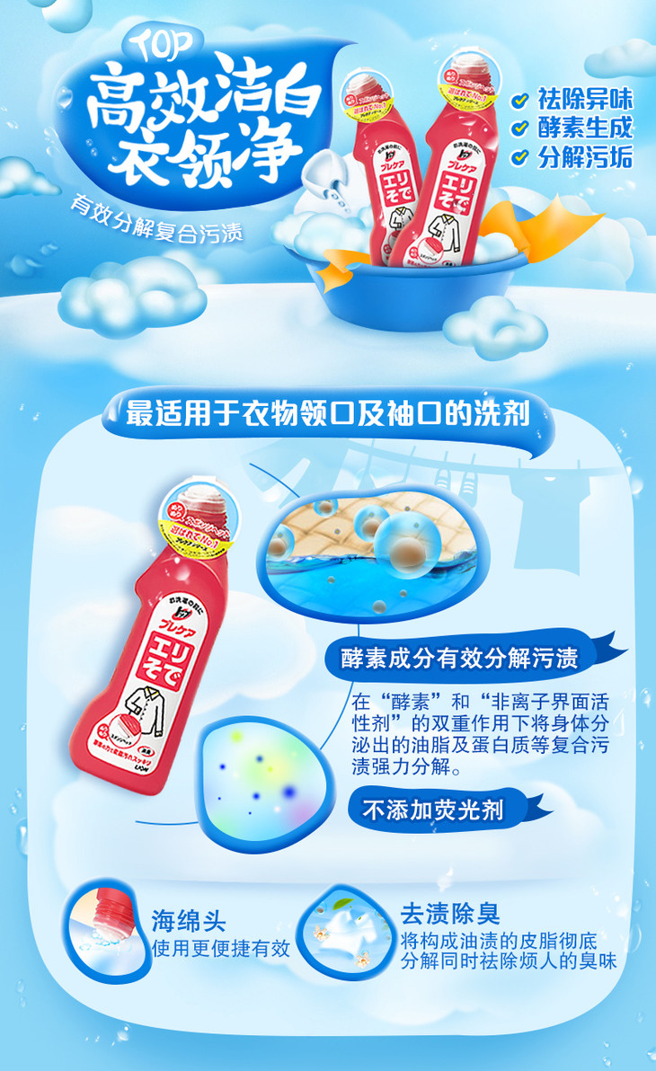 LION 狮王TOP高效洁白衣领净 去污剂洗领口袖口250ml