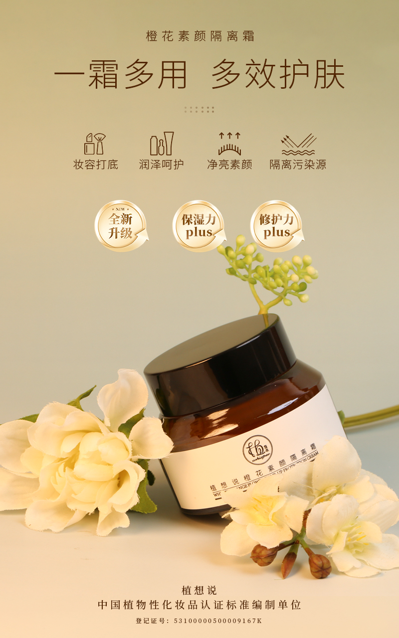 ✨纯素无添加【懒人霜 一瓶多用】植想说橙花素颜隔离霜 遮瑕妆前打底、防晒提亮肤色、天然无毒孕妇可用敏感肌可用