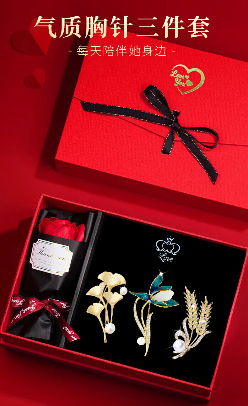 六鑫珠宝 生日礼物送女生胸针套装高档珍珠胸花别针