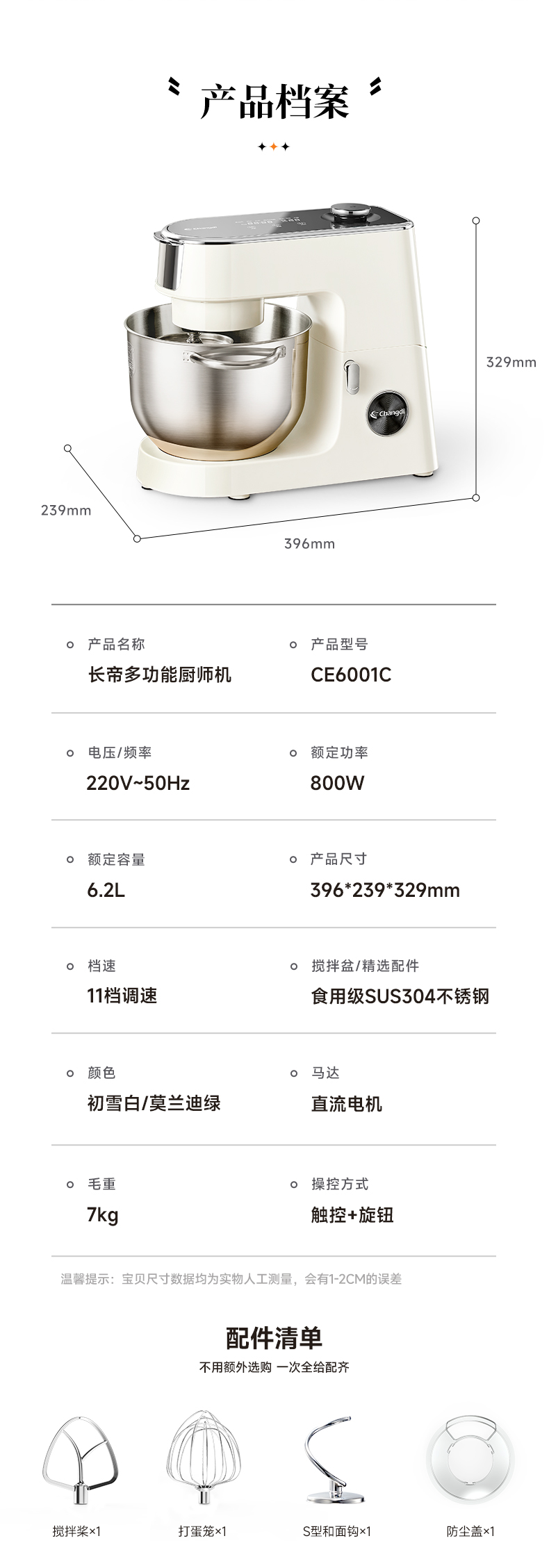 长帝 CE6001C企鹅顶顶 静音直流电机厨师机