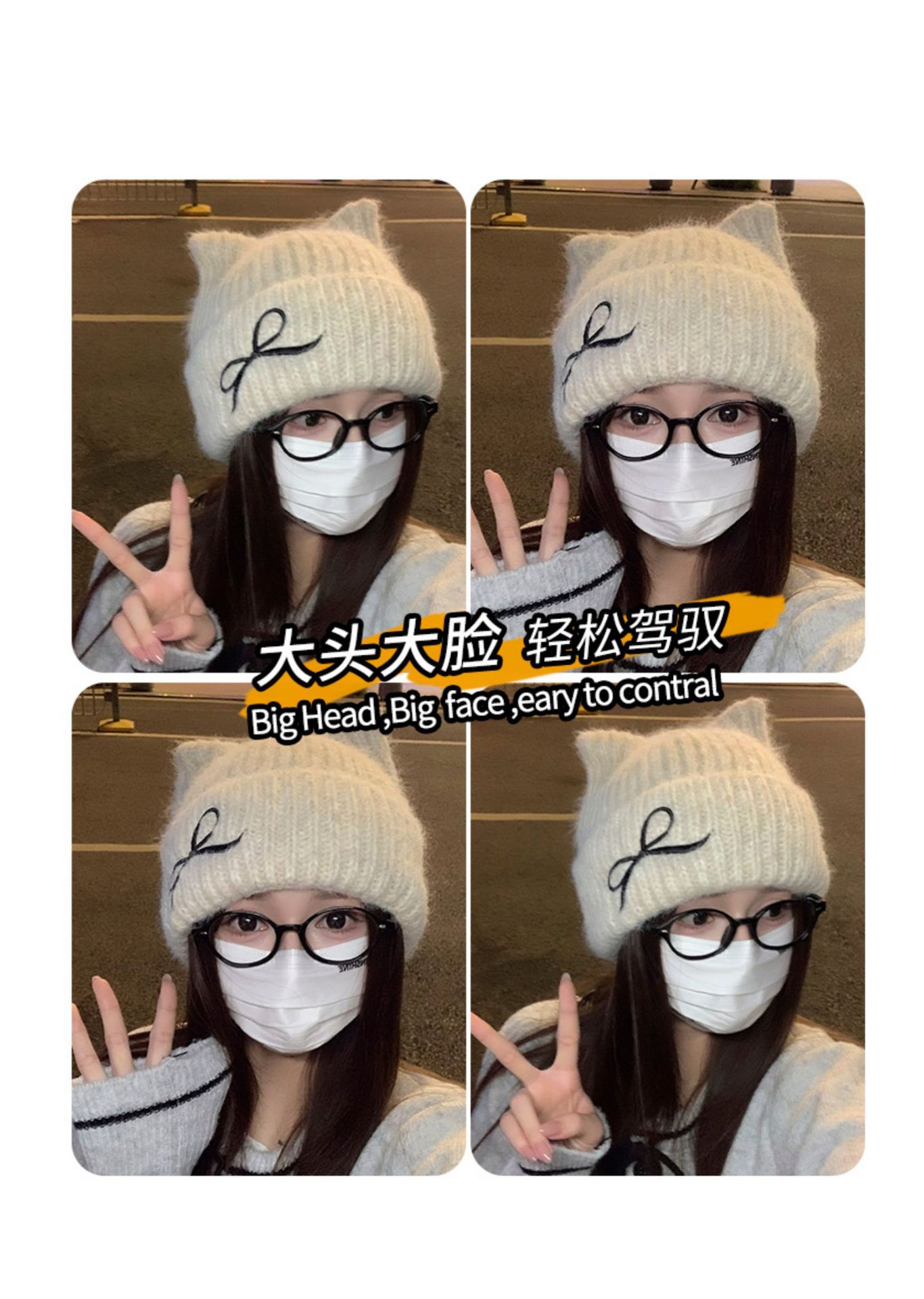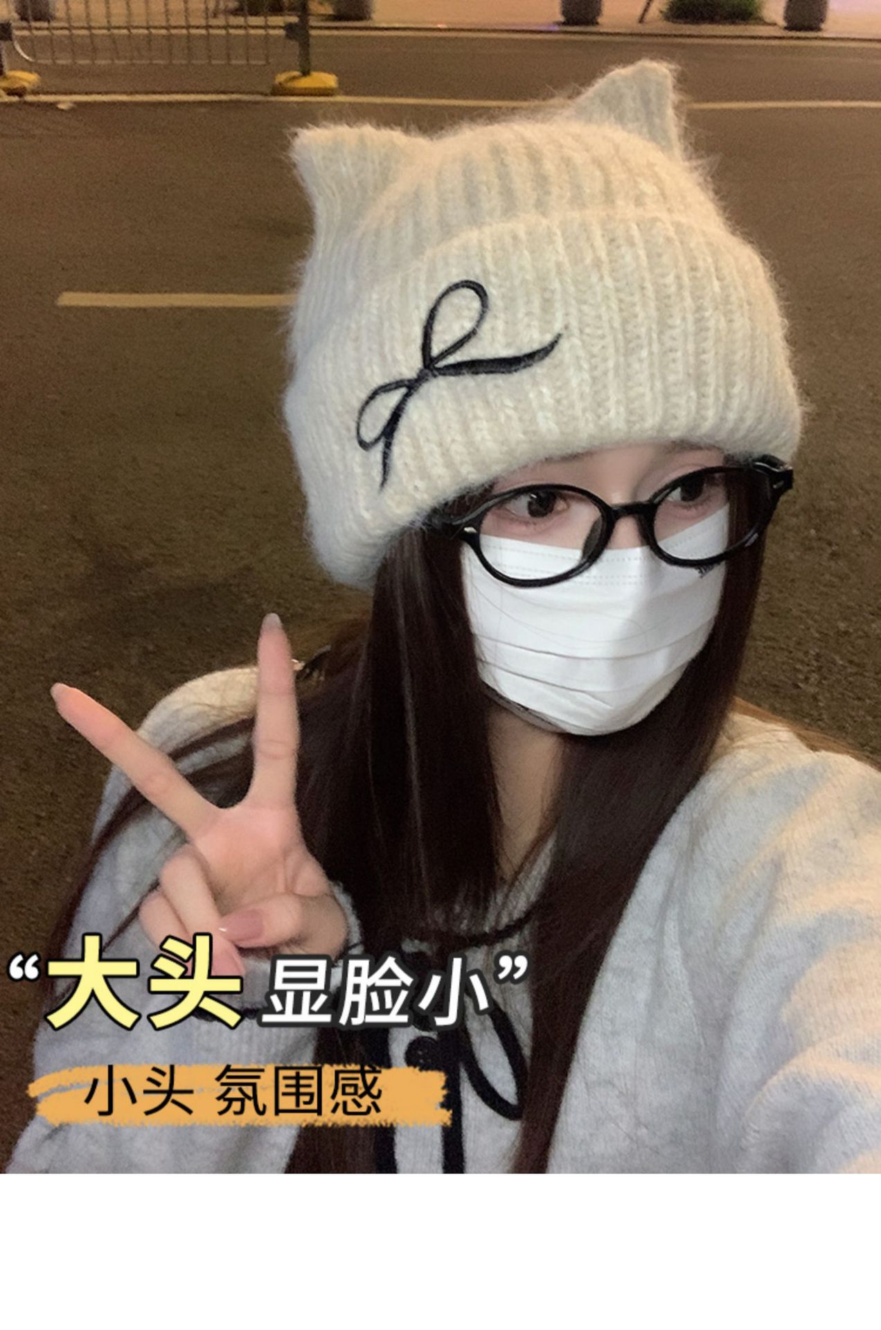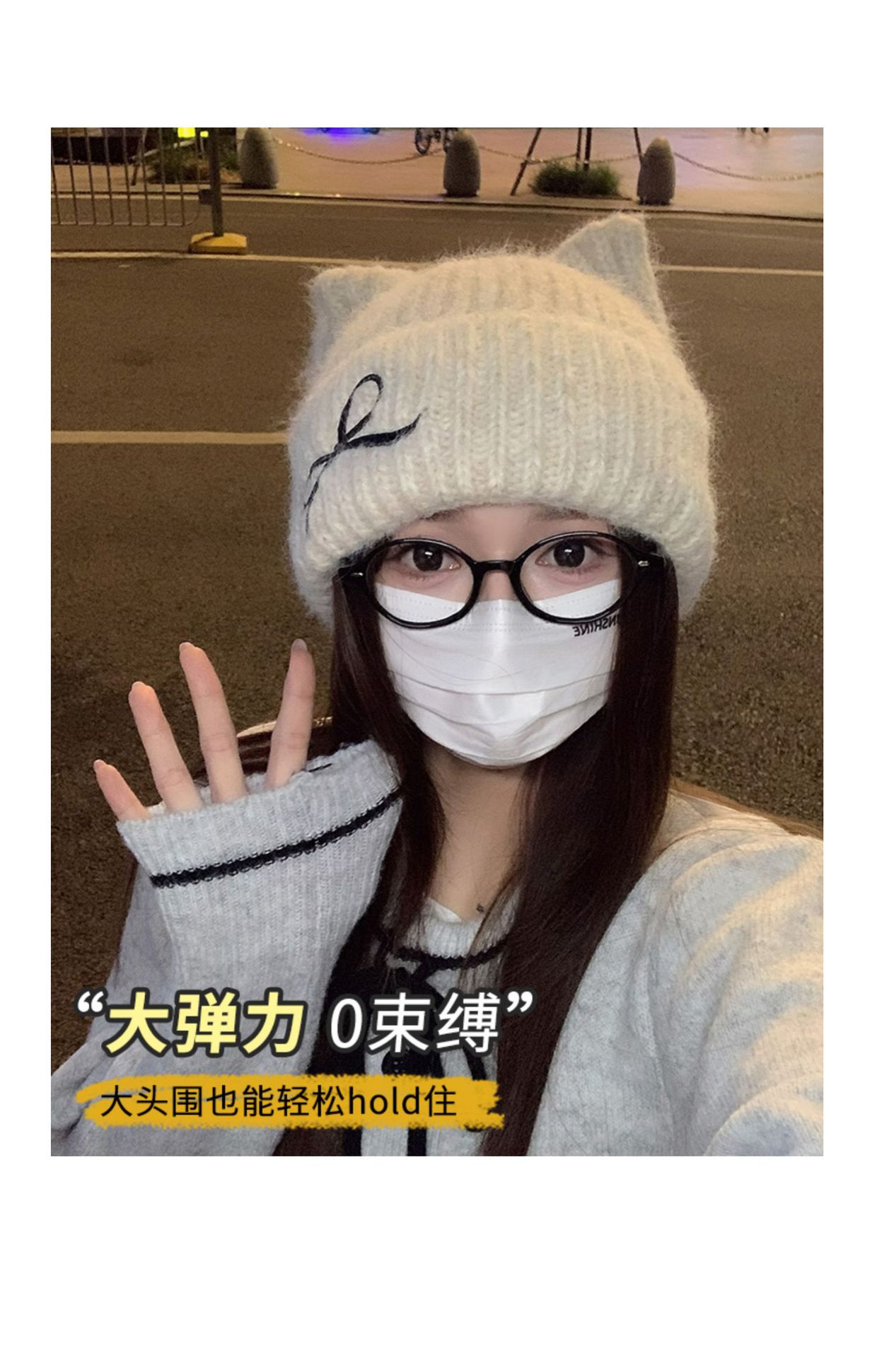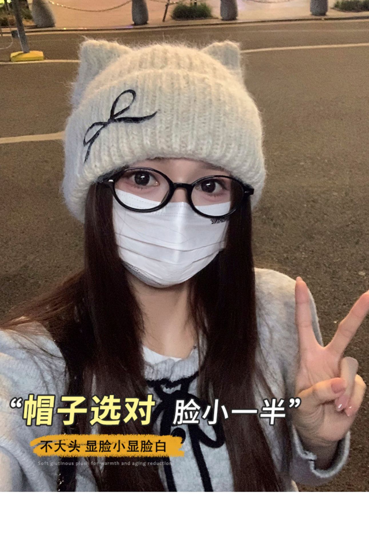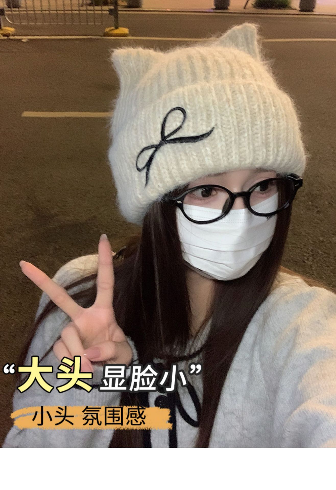 【秒杀❗️低至19.9元🔥日系猫耳针织帽子】大头围也能轻松hold住「大弹力零束缚」蝴蝶结大头围毛线帽女,显脸小保暖百搭针织冷帽L