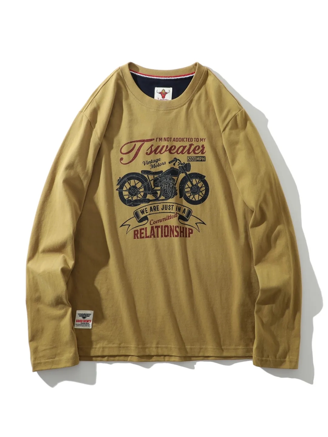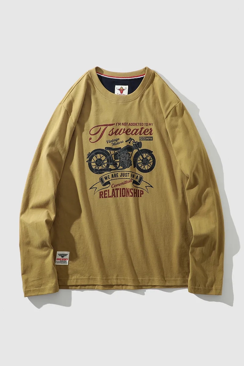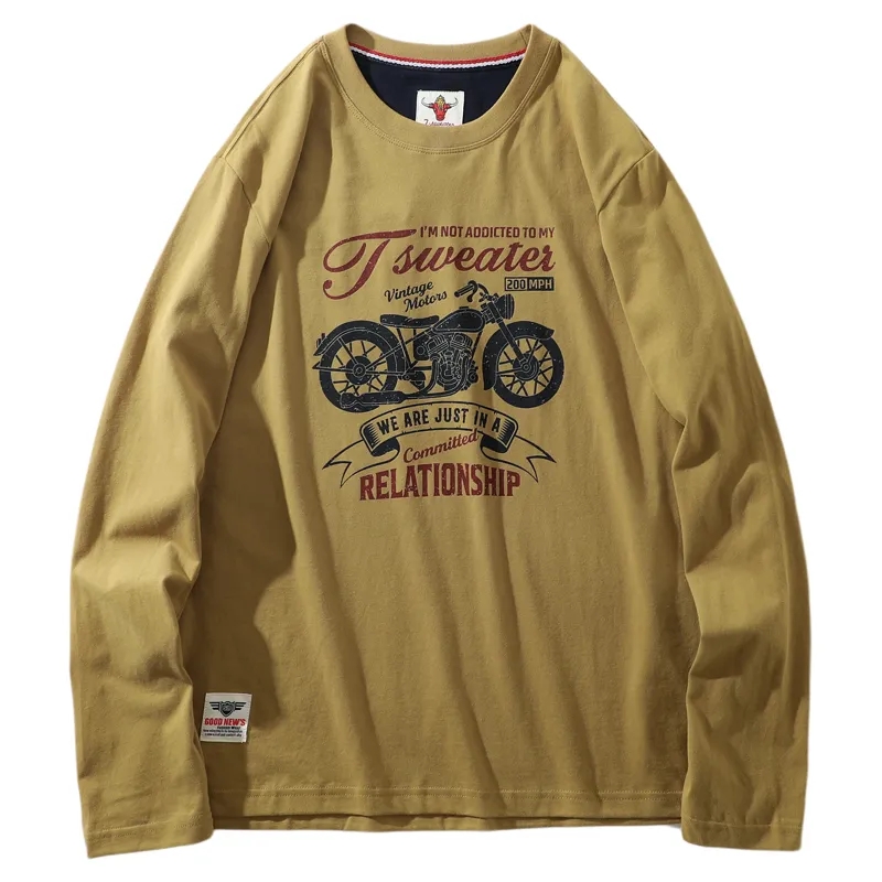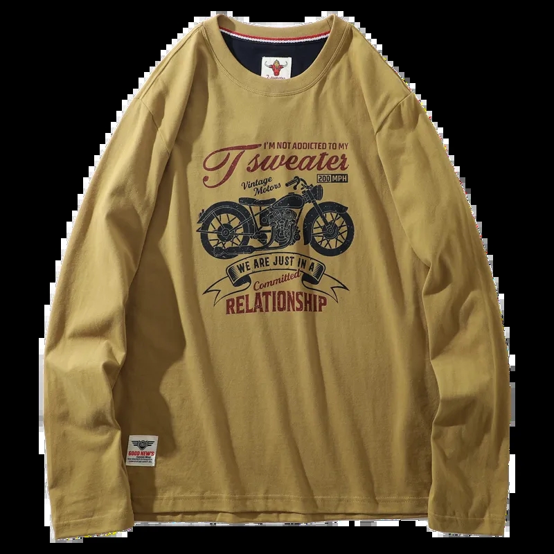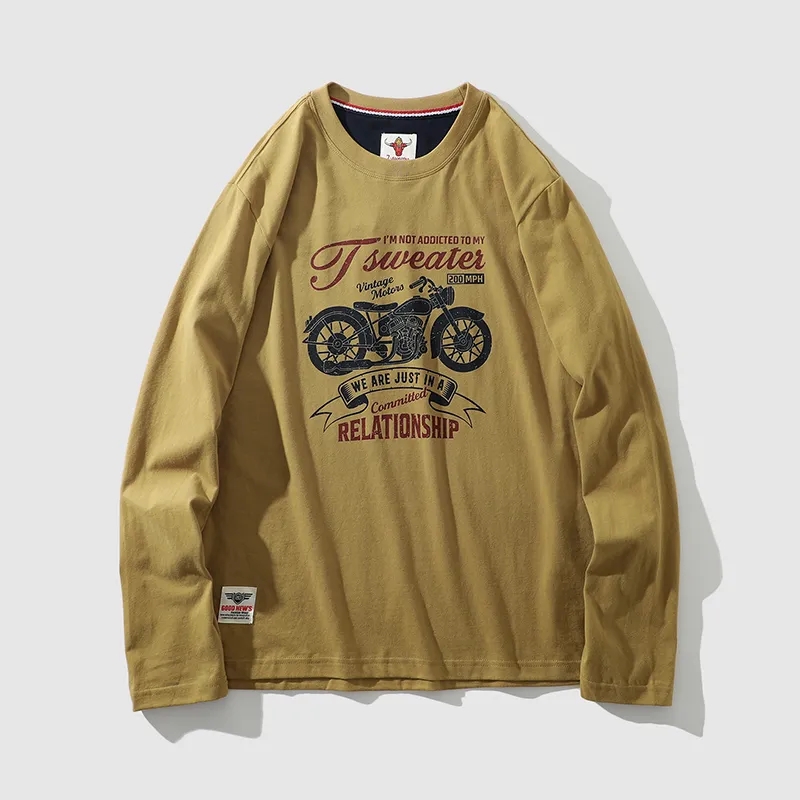 阿美咔叽风!纯棉220克重工水洗磨毛圆领打底衫 AF面料复古作旧无感印花百搭休闲长袖T!男女都可穿!