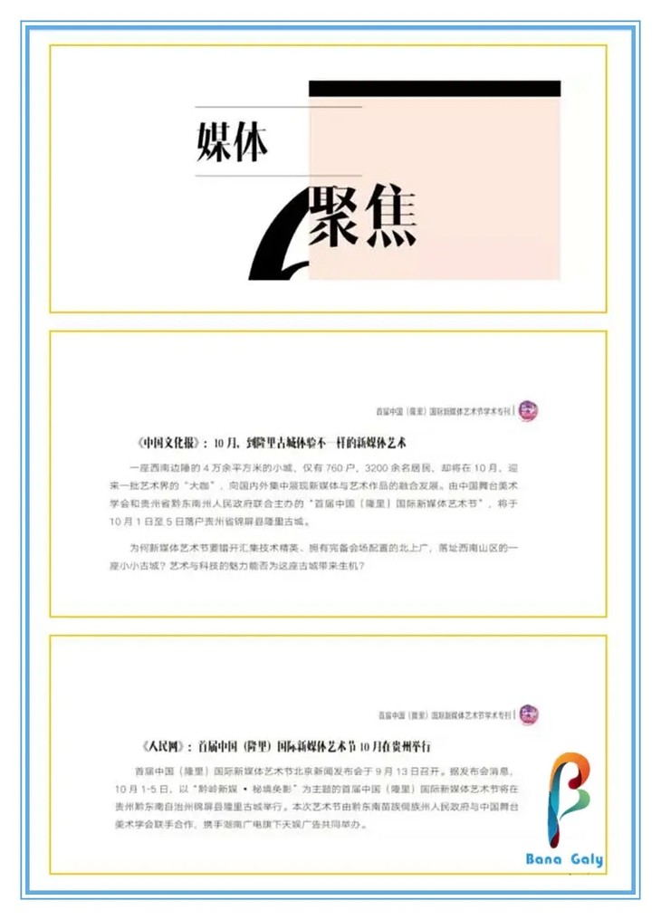 ▪《人民网》:首届中国(隆里)国际新媒体艺术节10月在贵州举行