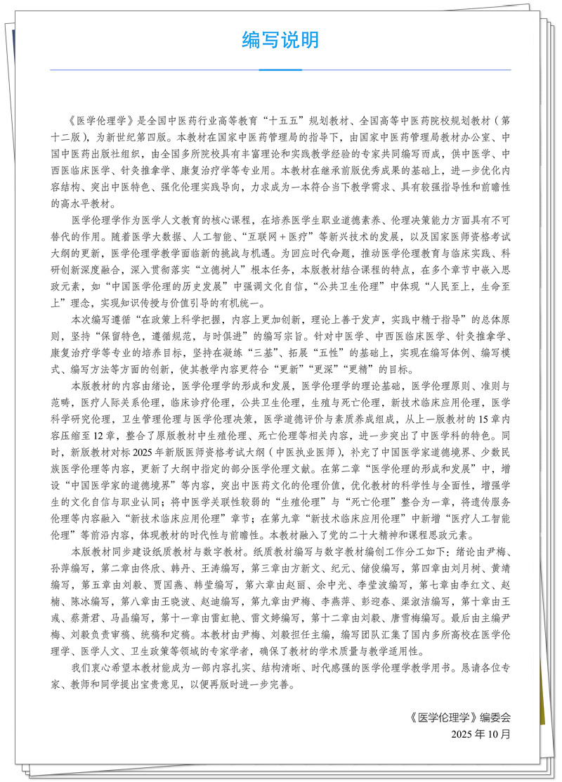 医学伦理学 尹梅 刘毅 主编(第四版) 全国中医药行业高等教育十五五规划教材第十二版书 中国中医药出版社