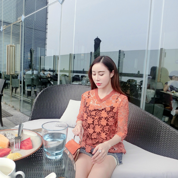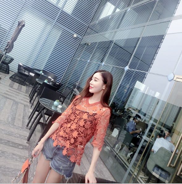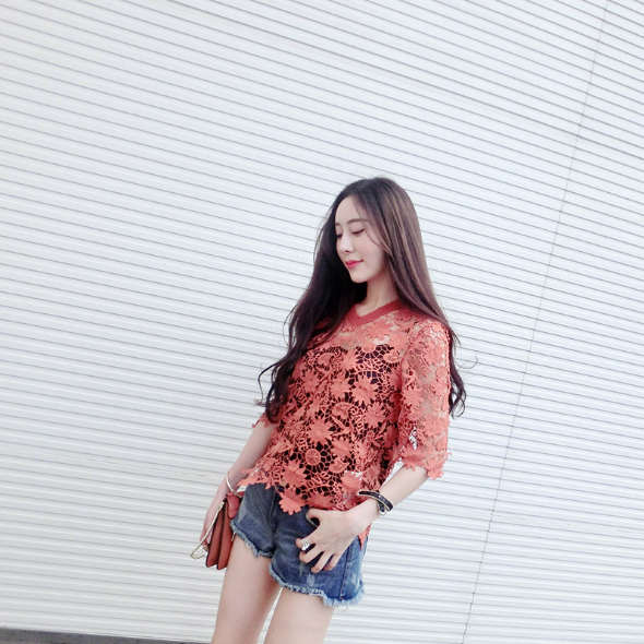 【服饰】轻奢 唯美土橙色 蕾丝钩花上衣附吊带