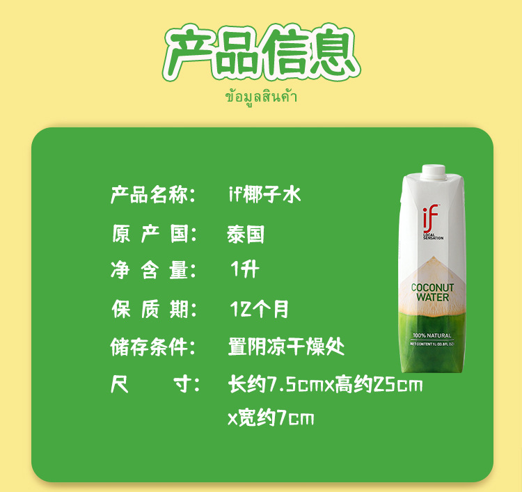 泰国进口if椰子水补充电解质生榨椰青无添加网红款1L