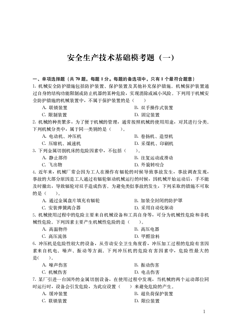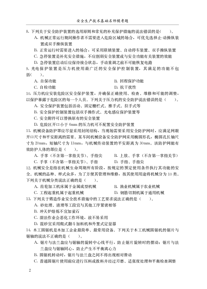 安全生产技术基础名师模考题 全国中级注册安全工程师职业资格考试名师模考题
