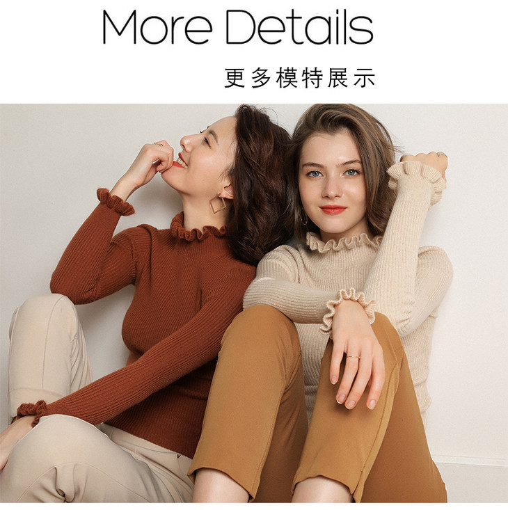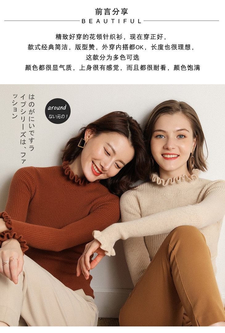 秋冬季新款短款花领毛衣女纯色紧身套头针织衫修身内搭高领打底衫