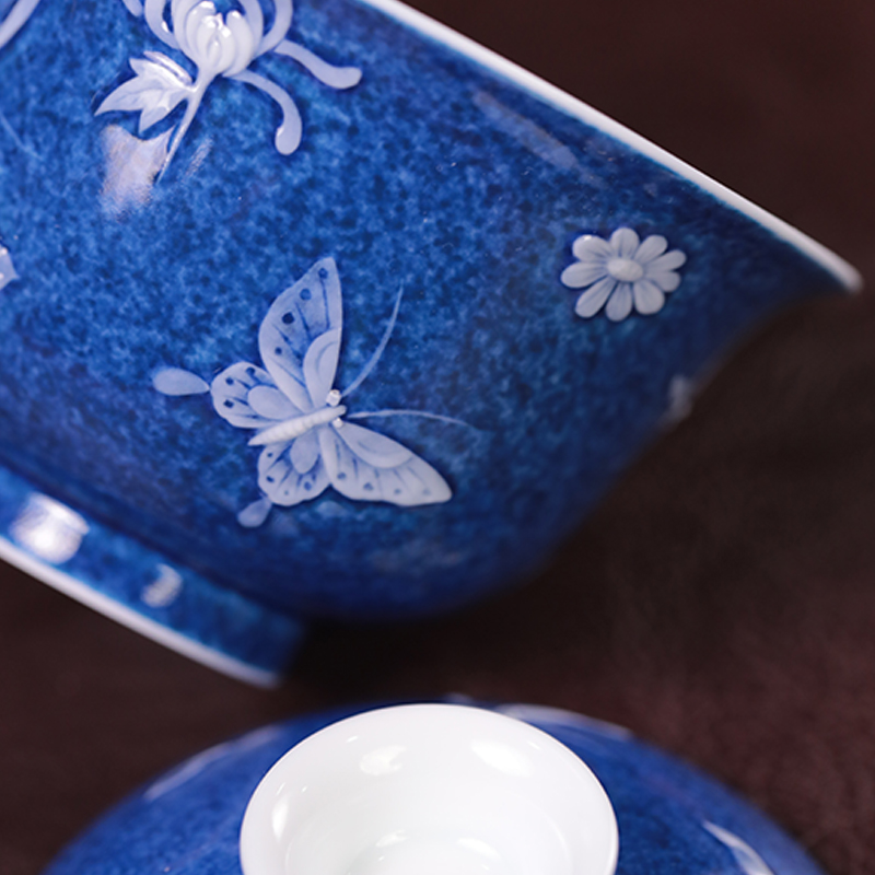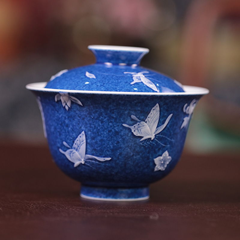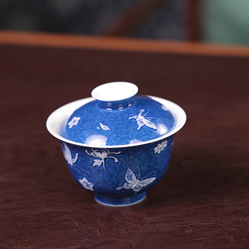 初蓝舍洒蓝蝴蝶盖碗