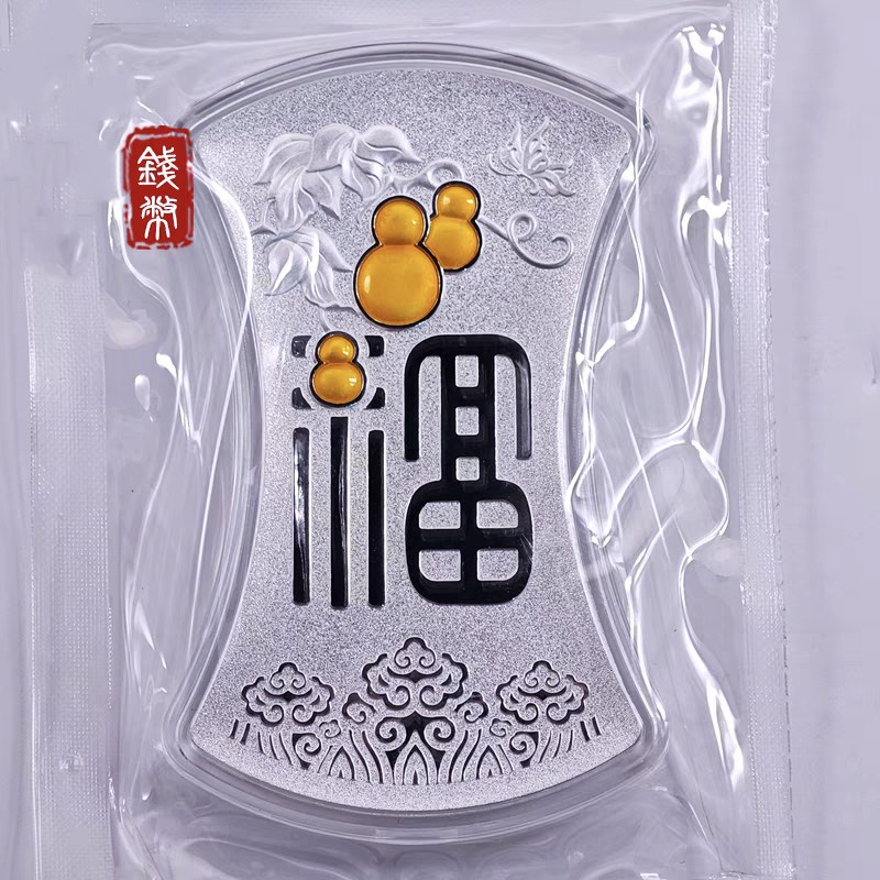 【一定有福】银的设计太美了!正中央是一个大大的篆书“福”字,上面以镀金的葫芦作为点缀,象征有福又有财,寓意美好!