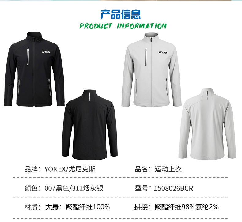 2026年新款YONEX尤尼克斯羽毛球服男女舒适透气长袖外套1508026BCR运动卫衣