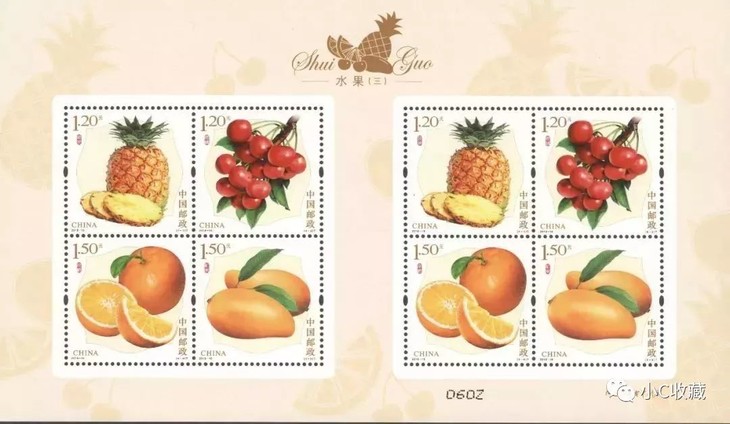 中国邮政分别于2014年、2016年先后发行《水果(一)》《水果(二)》两组邮票,展现苹果、桃、石榴、金橘、杏、葡萄、西瓜、荔枝八种水果。