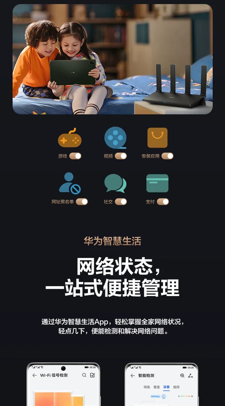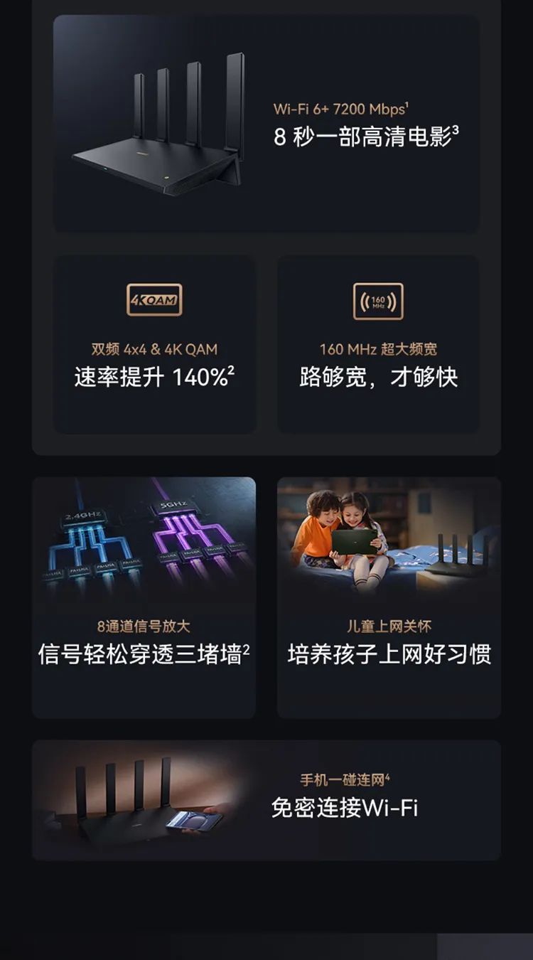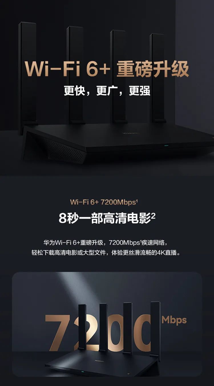 华为路由AX6 new7200兆级Wi-Fi6无线路由器(WS8700V2)黑