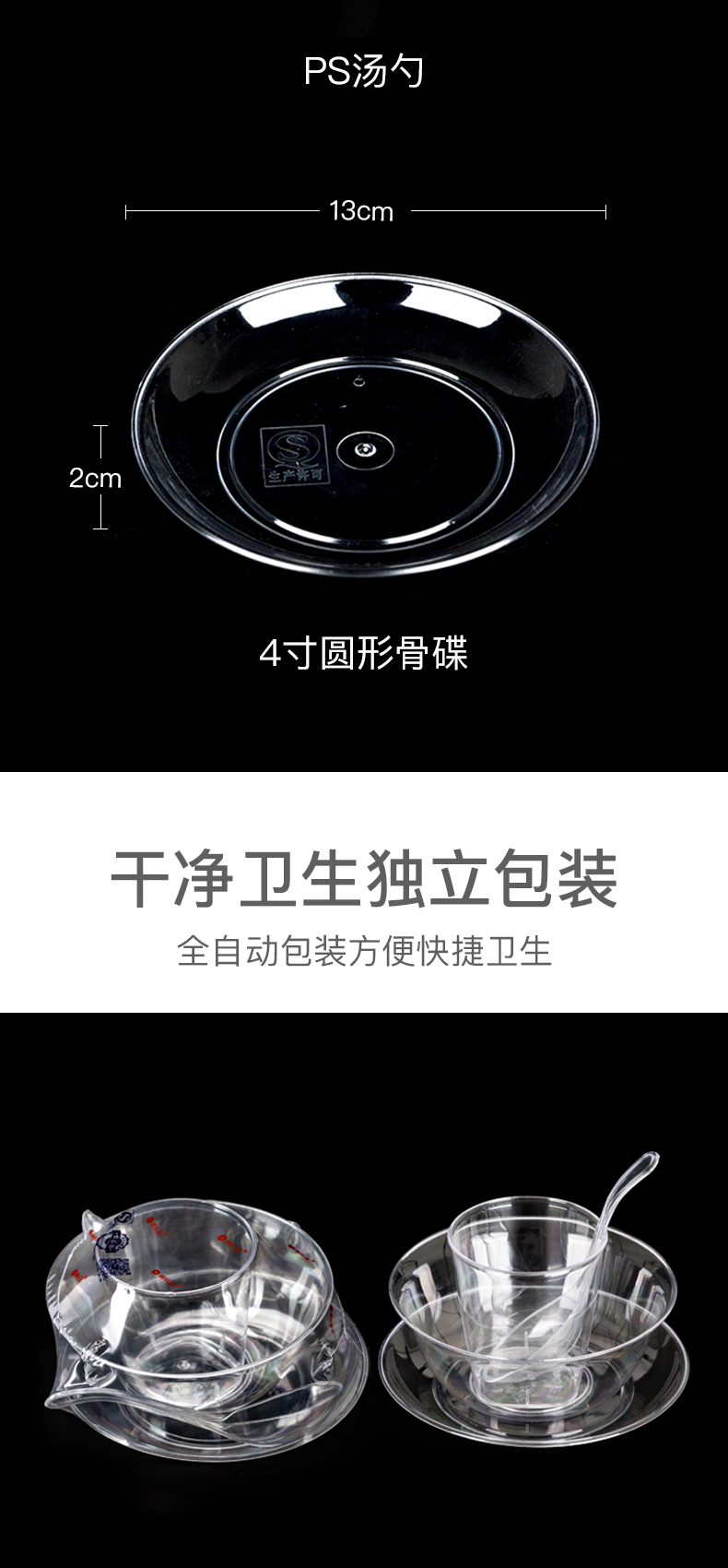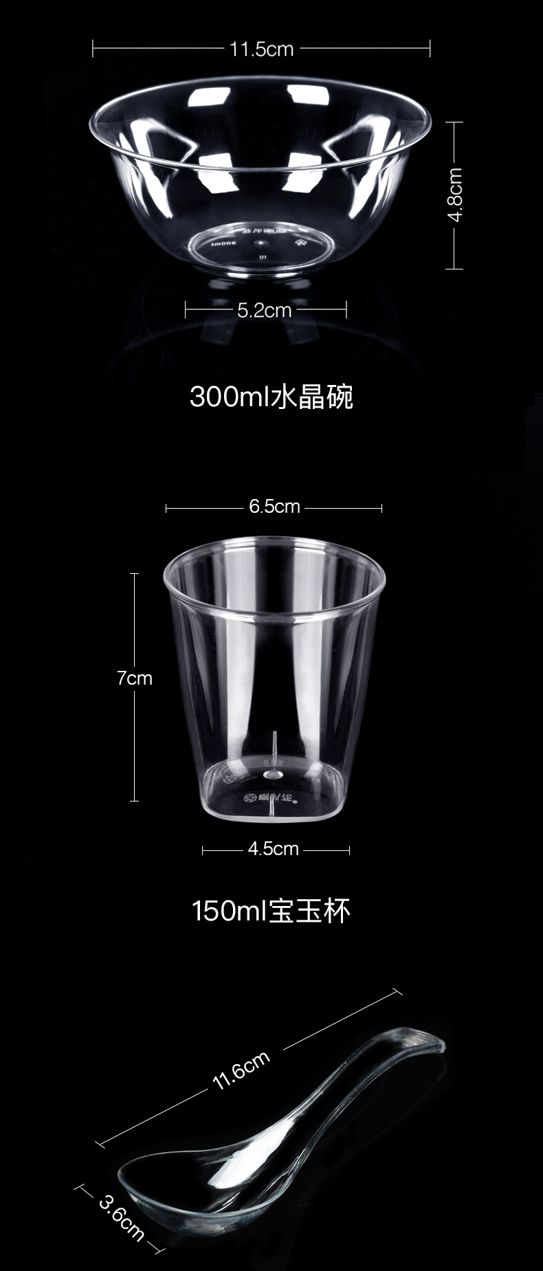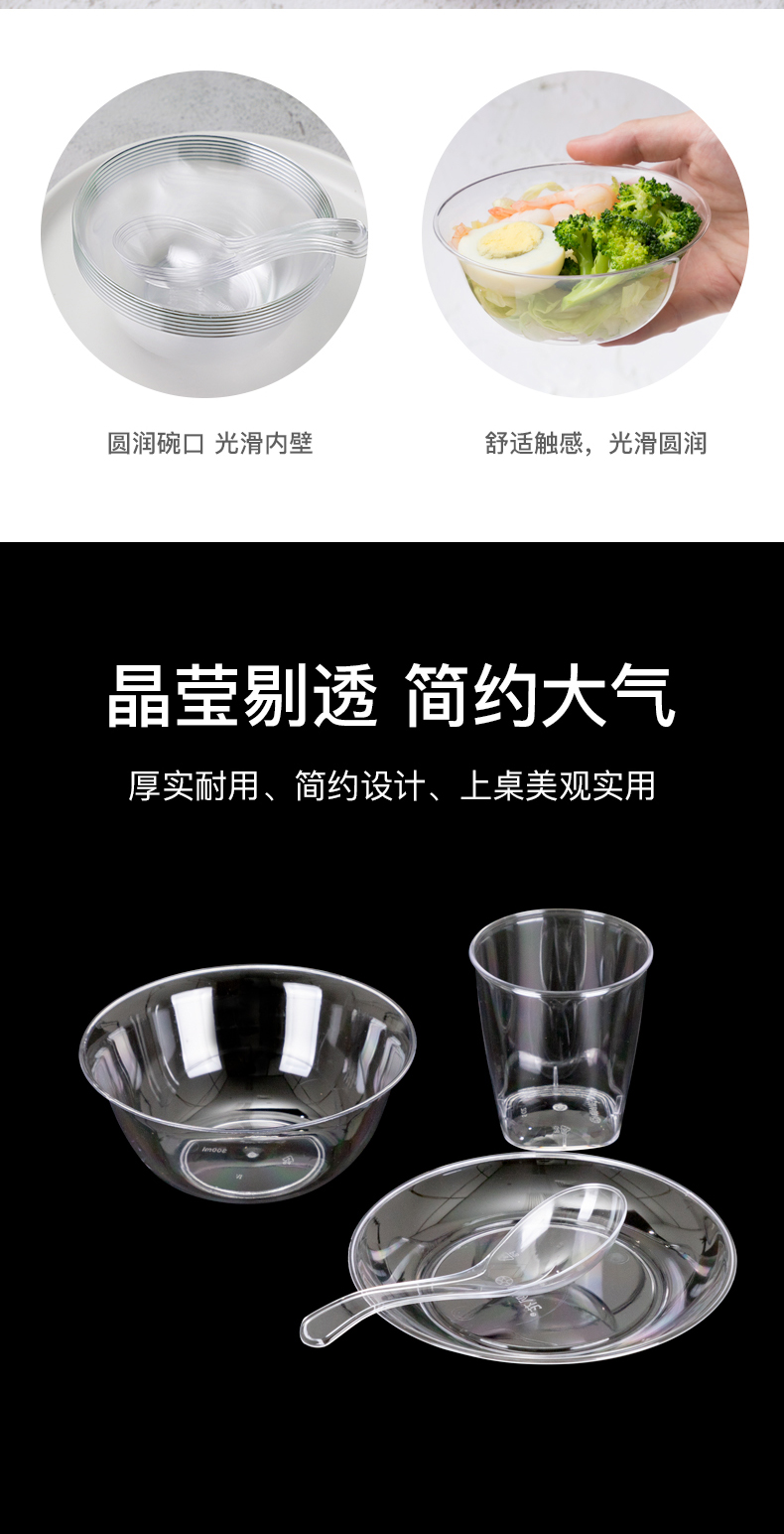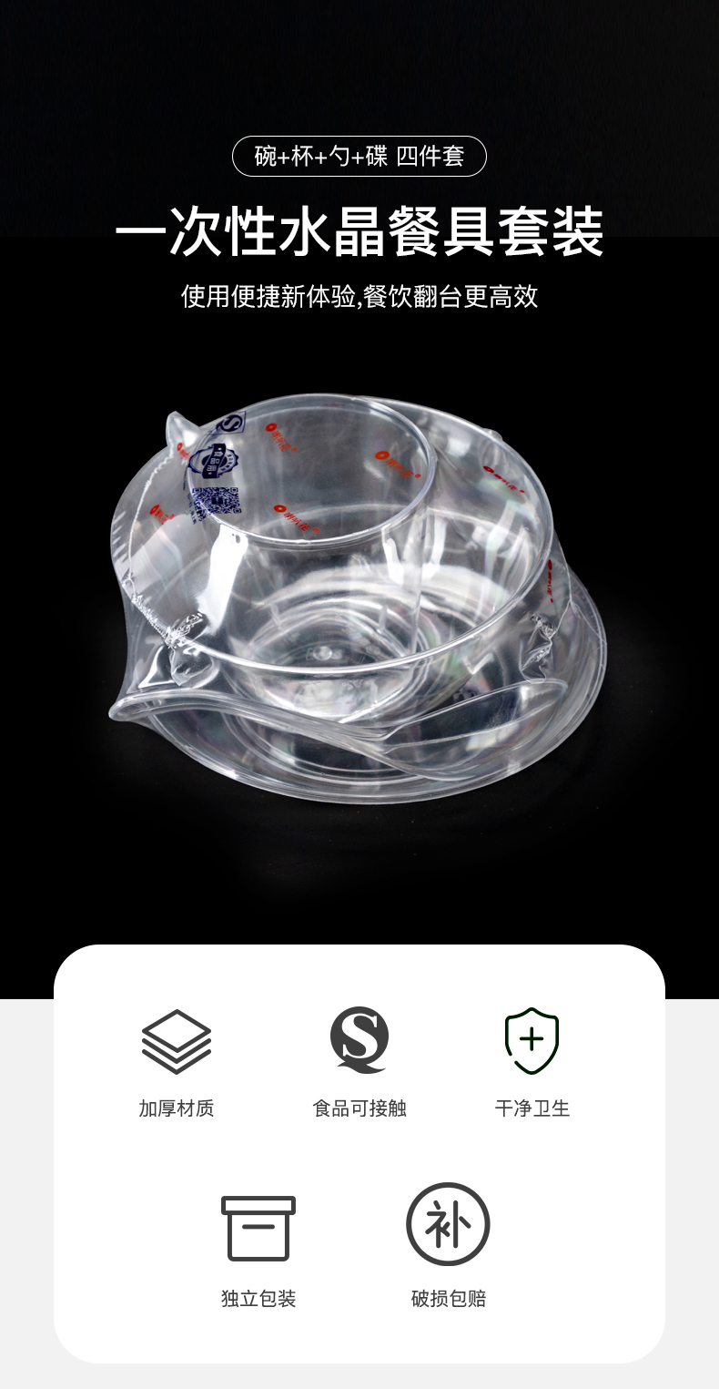 喇叭花一次性水晶餐具四件套装酒席火锅烧烤野餐家用杯碗碟勺100套