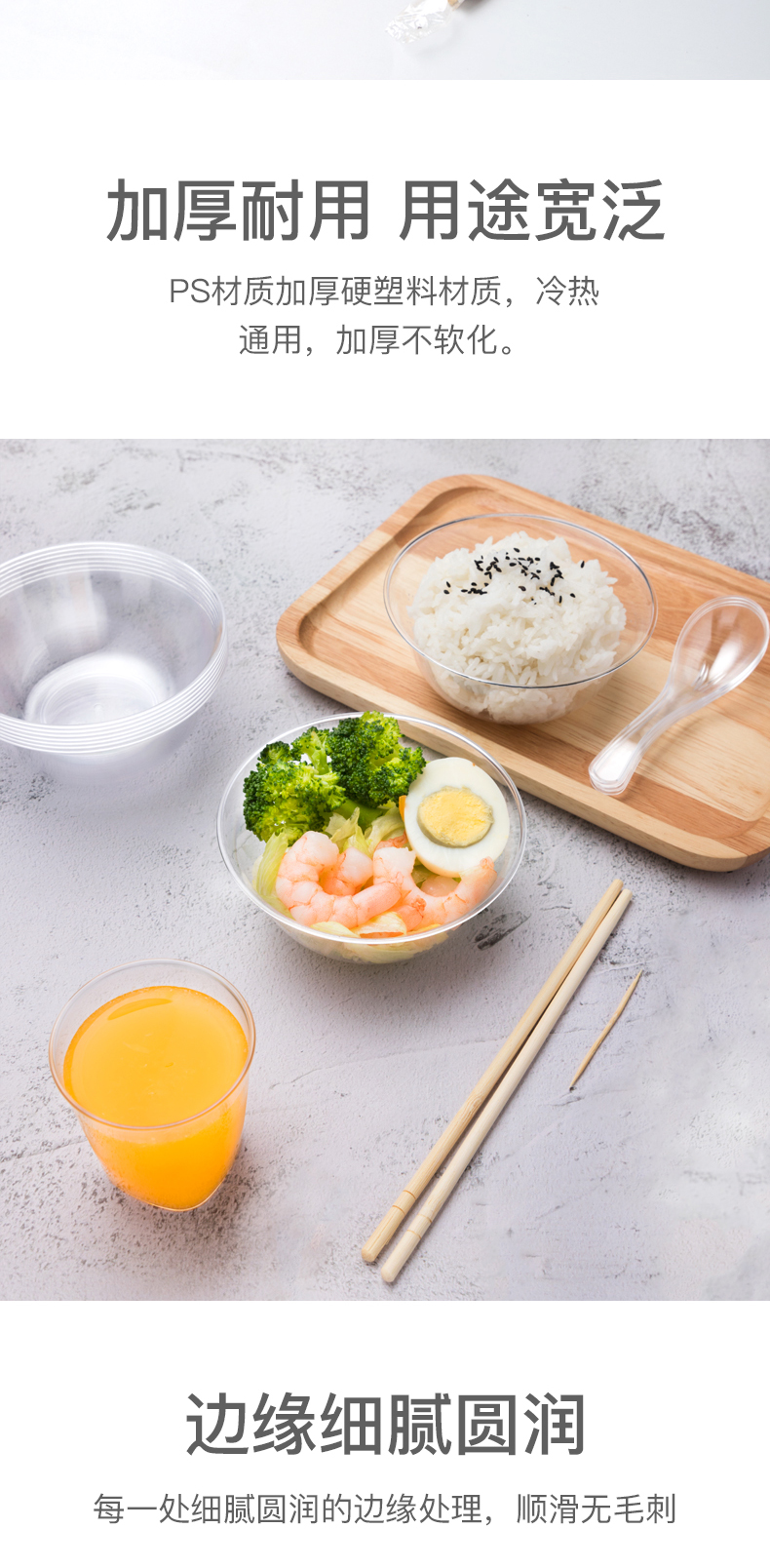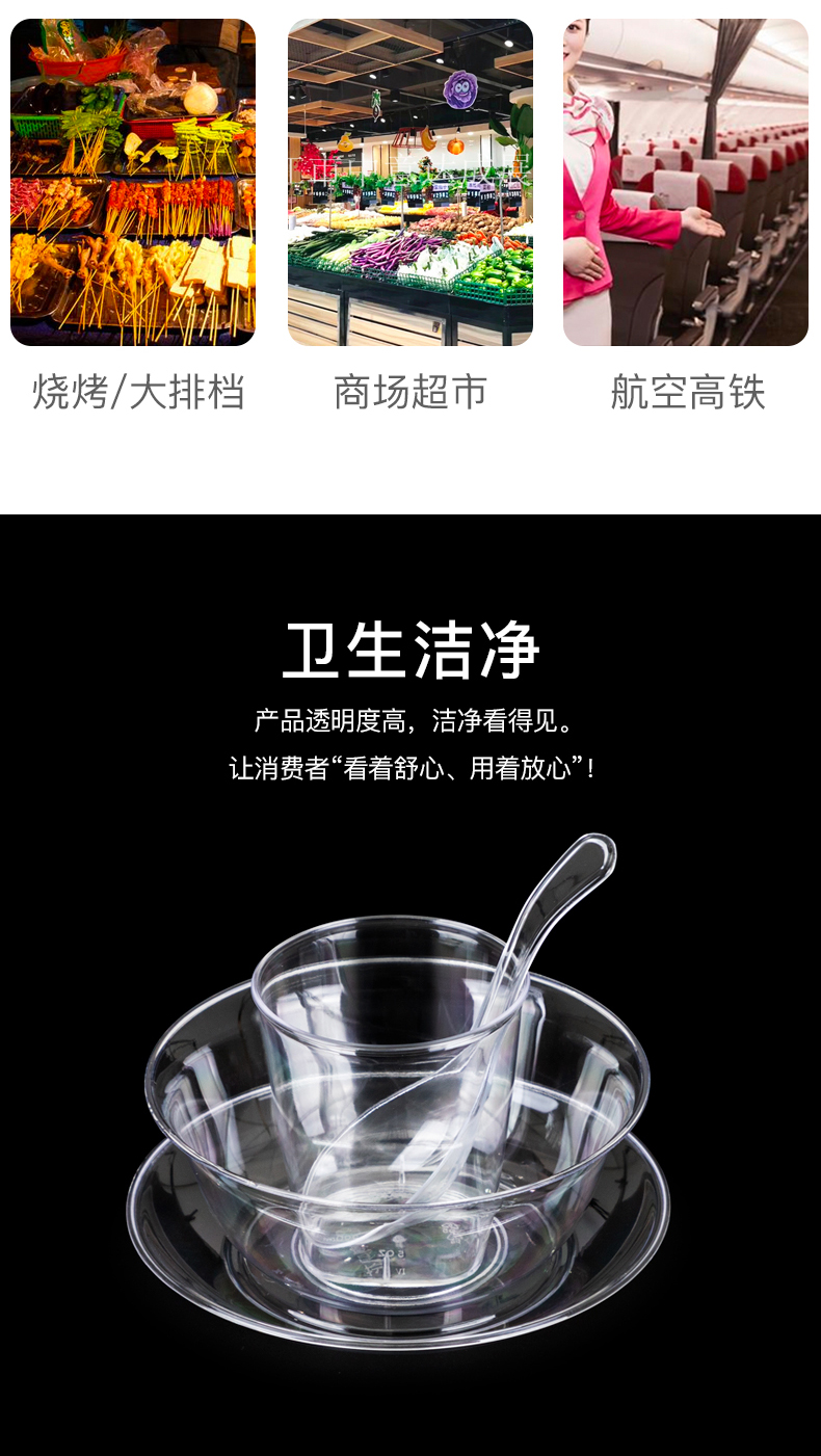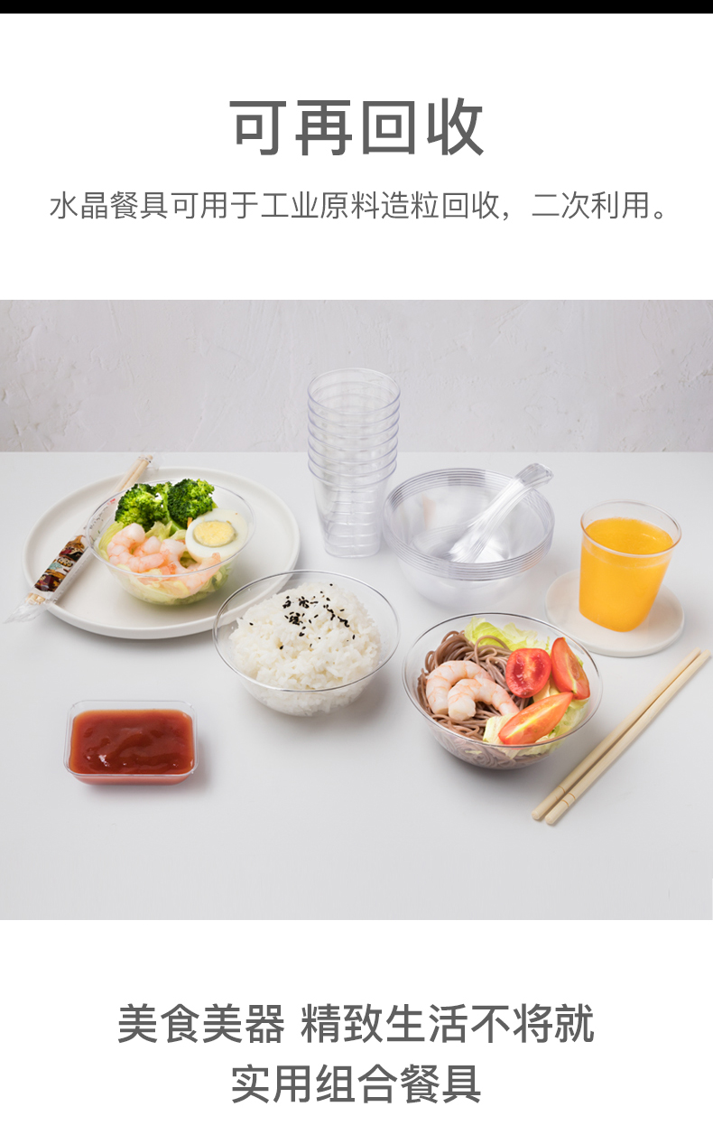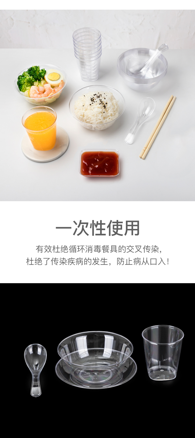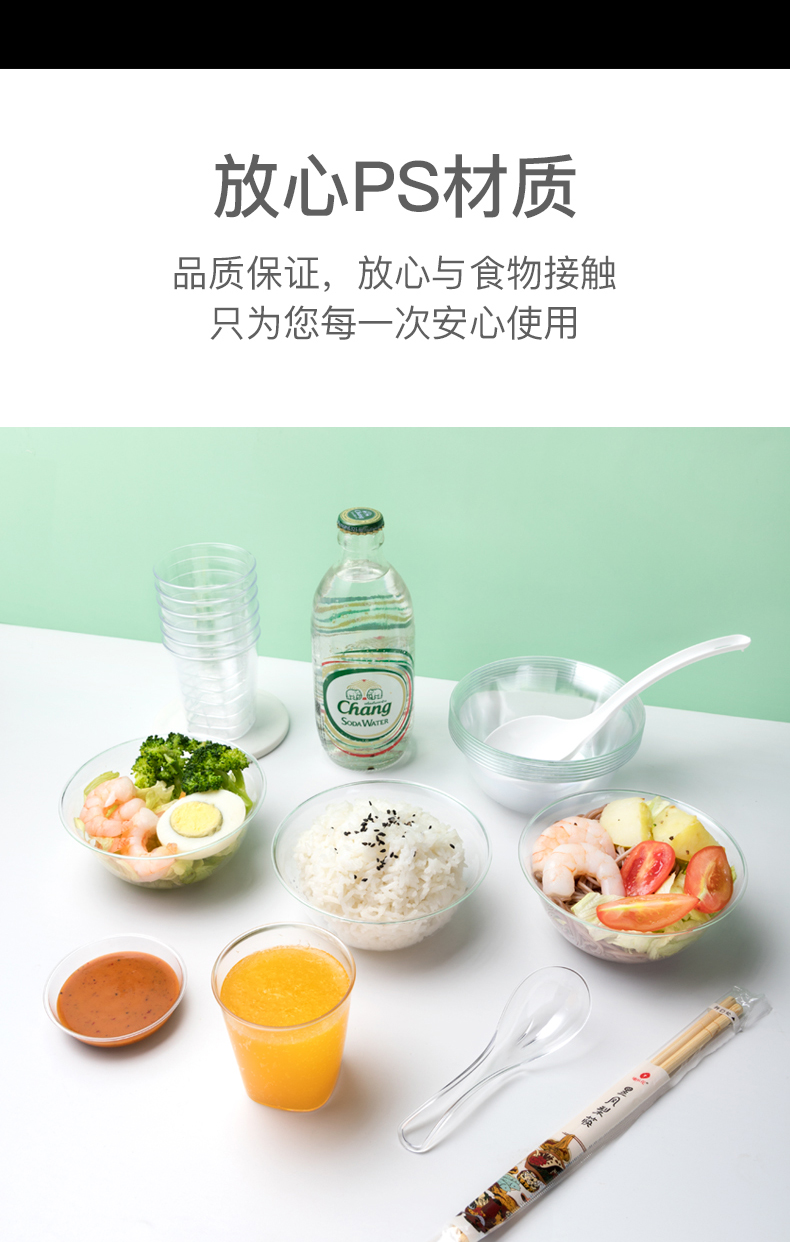 喇叭花一次性水晶餐具四件套装酒席火锅烧烤野餐家用杯碗碟勺100套