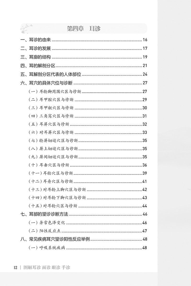 中医的诊病手段主要有望、闻、问、切四个方面,其中尤以望诊最为神奇,素有“望而知之谓之神”之说。本书将中医望诊中最突出的四部分内容,即耳诊、面诊、眼诊、手诊,采用“知识点+图片”的方式向大家展开,包括达到对疾病的定性、定位、定量、定质一体化诊断,真正接触到古代中医的望诊境界。希望本书能成为广大中医爱好者学习经典中医望诊的参考资料,同时希望本书能为广大读者进行自我健康体检提供支持,因为望诊可以对许多疾病进行超前诊断,所以,可以未病先防,小病防渐,已病防重,做到真正的早诊断、早预防、早治疗。