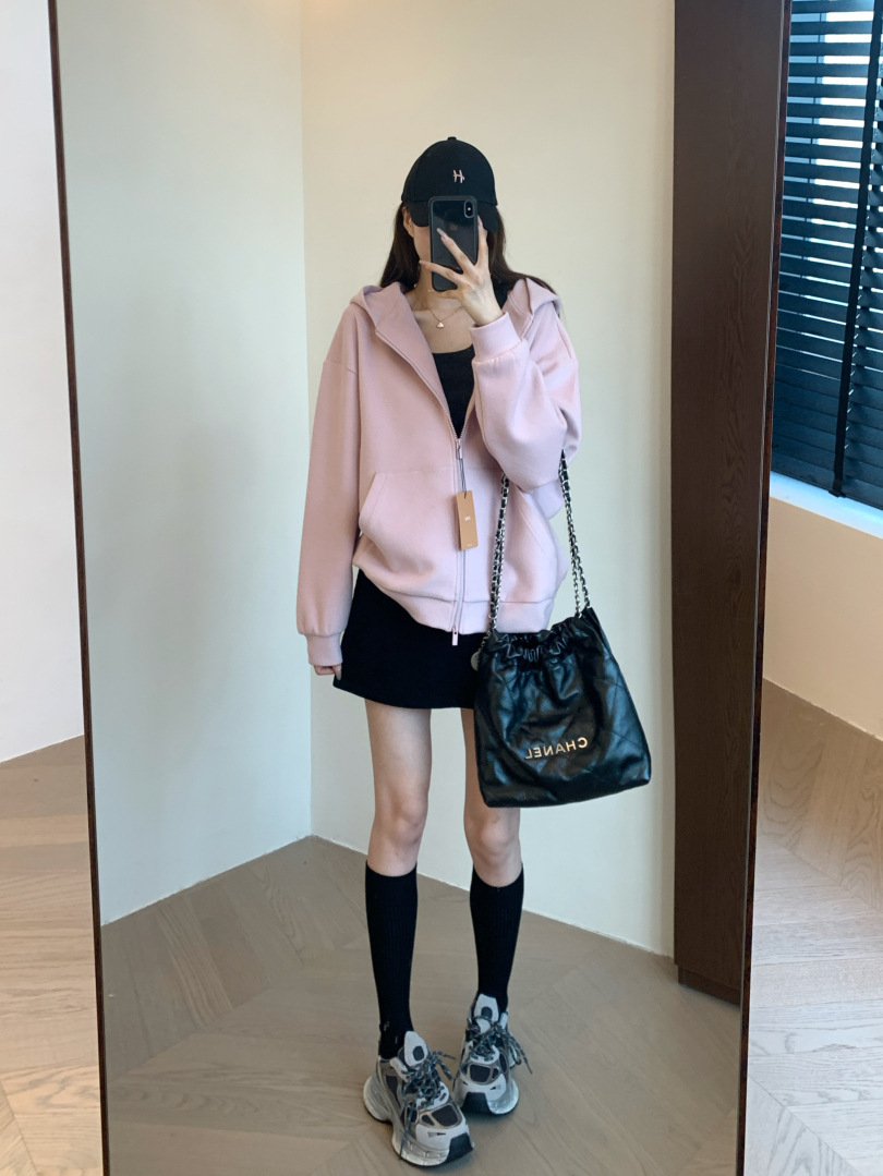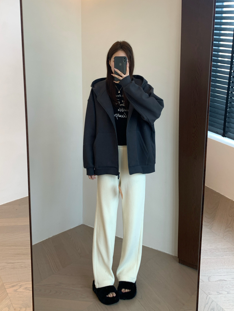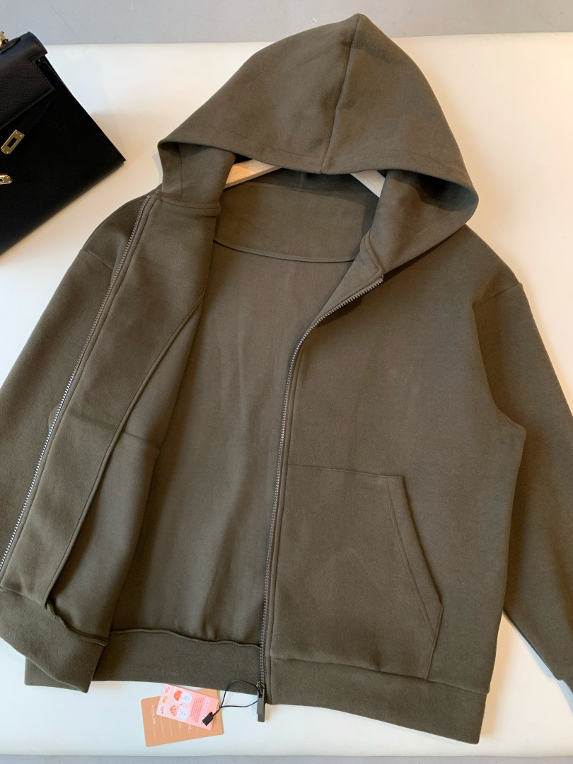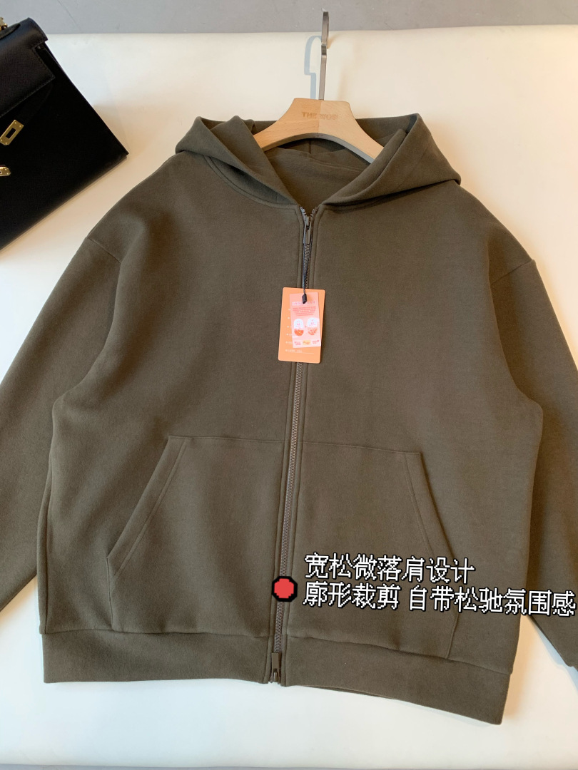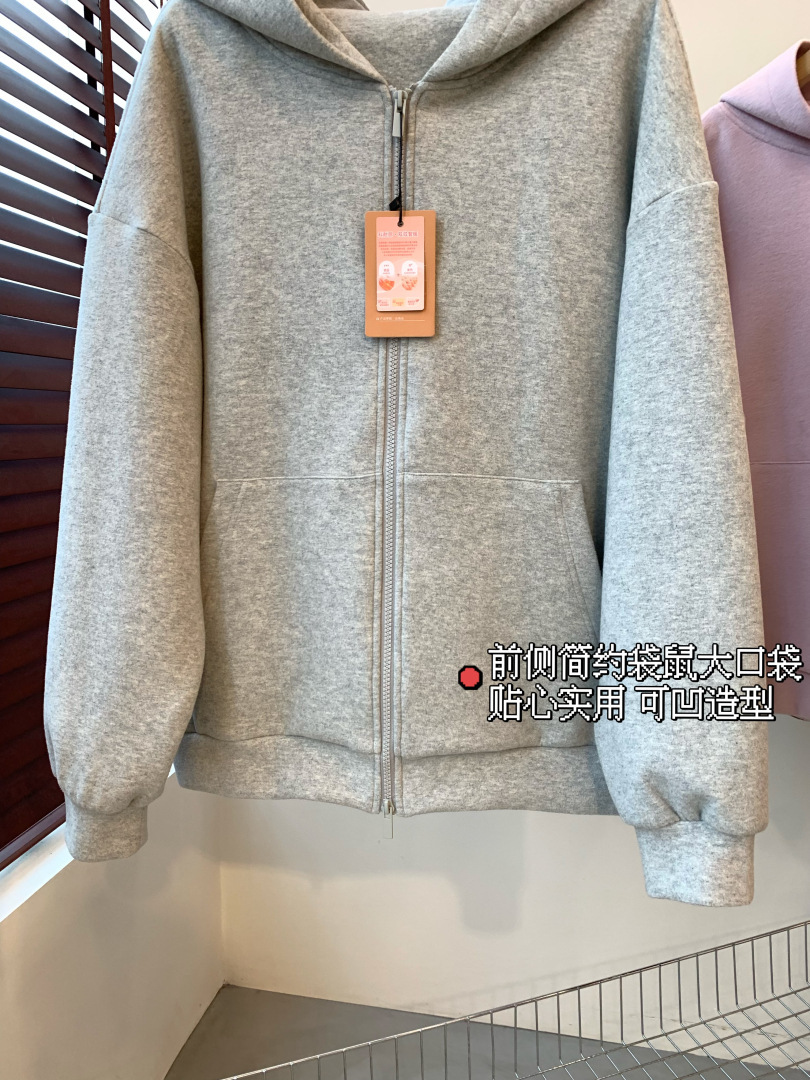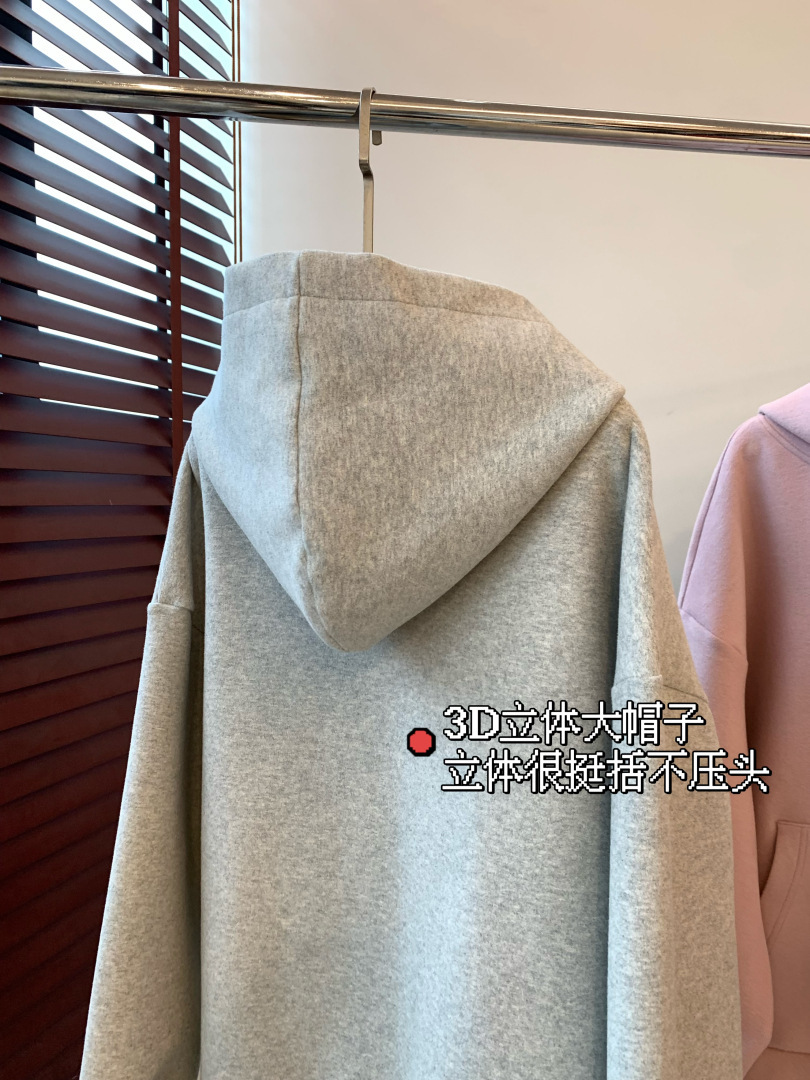 面料柔软又有型,上身遮肉显瘦!帽子也很立体!