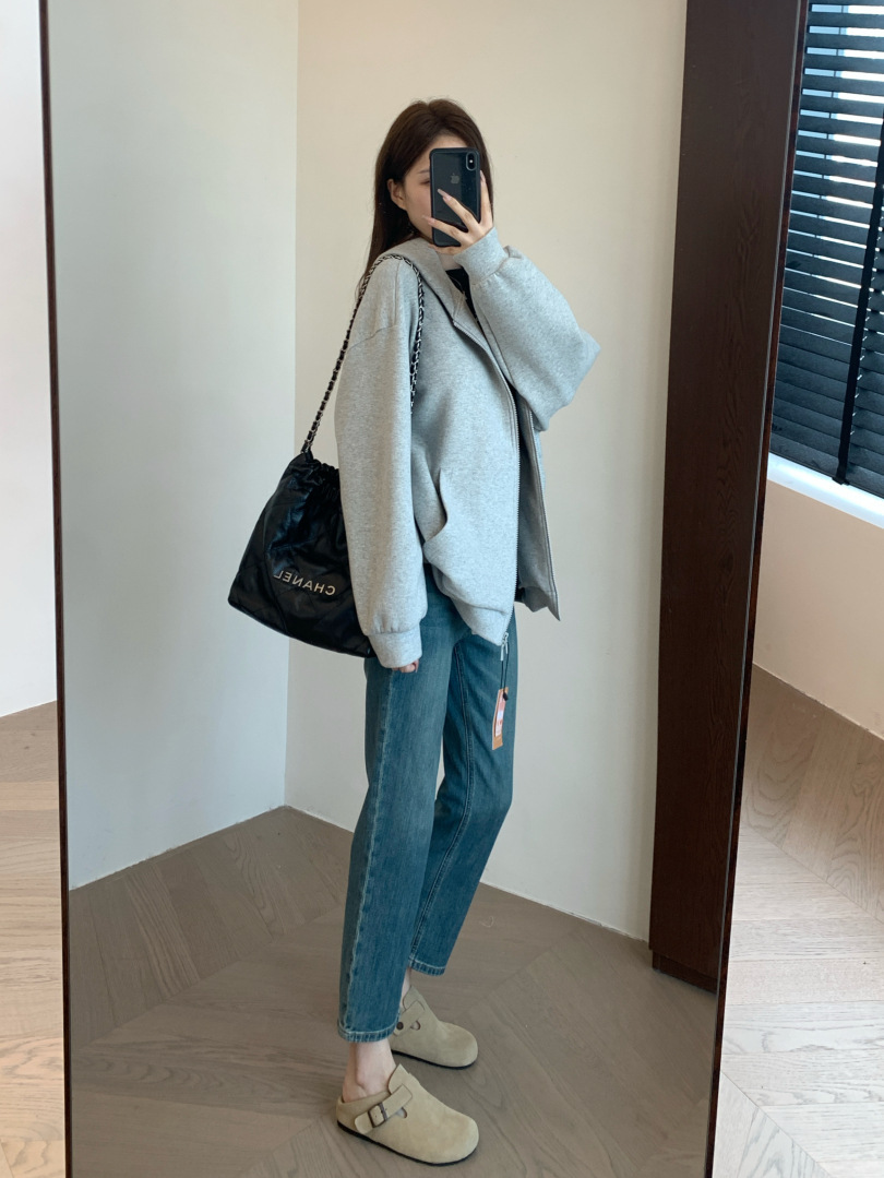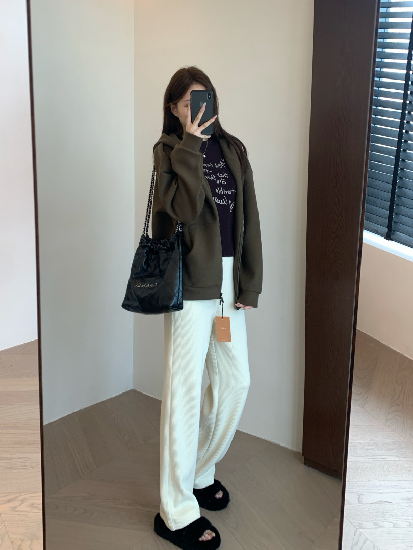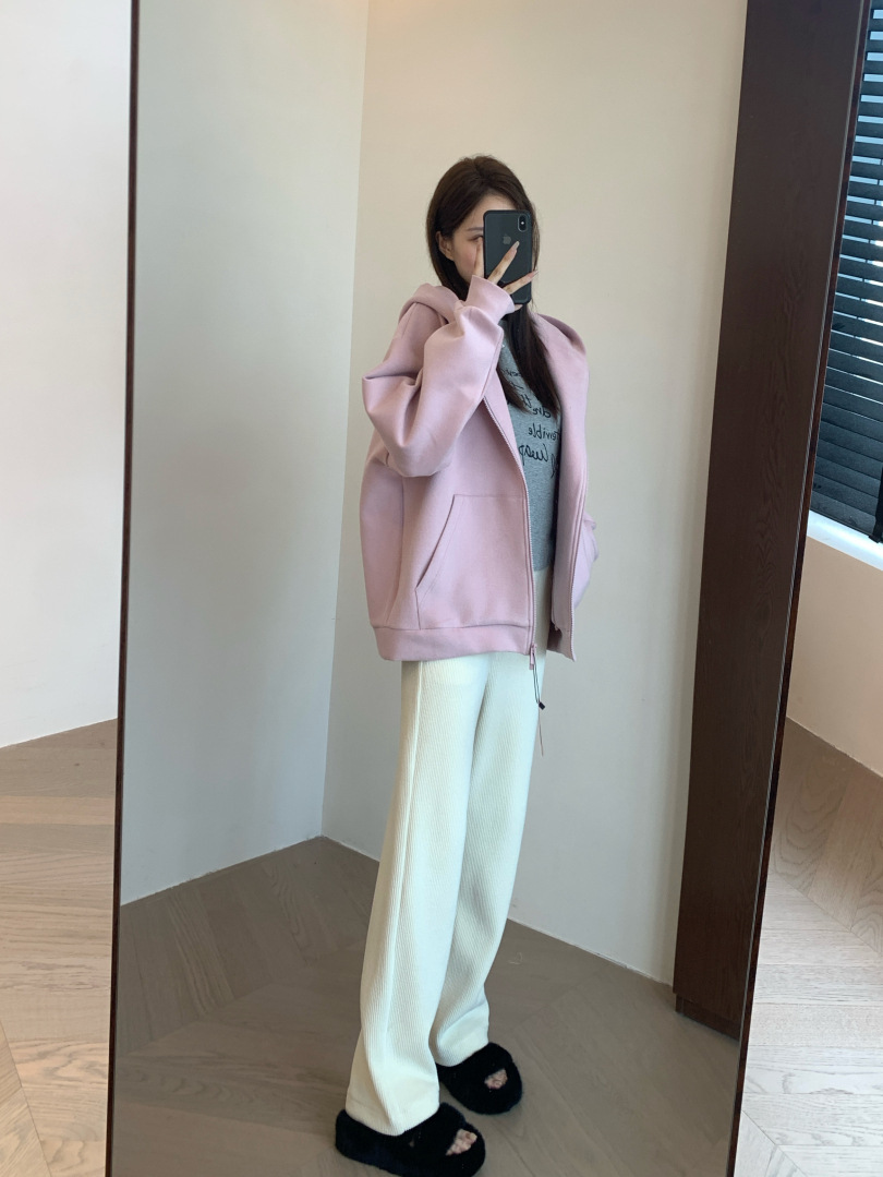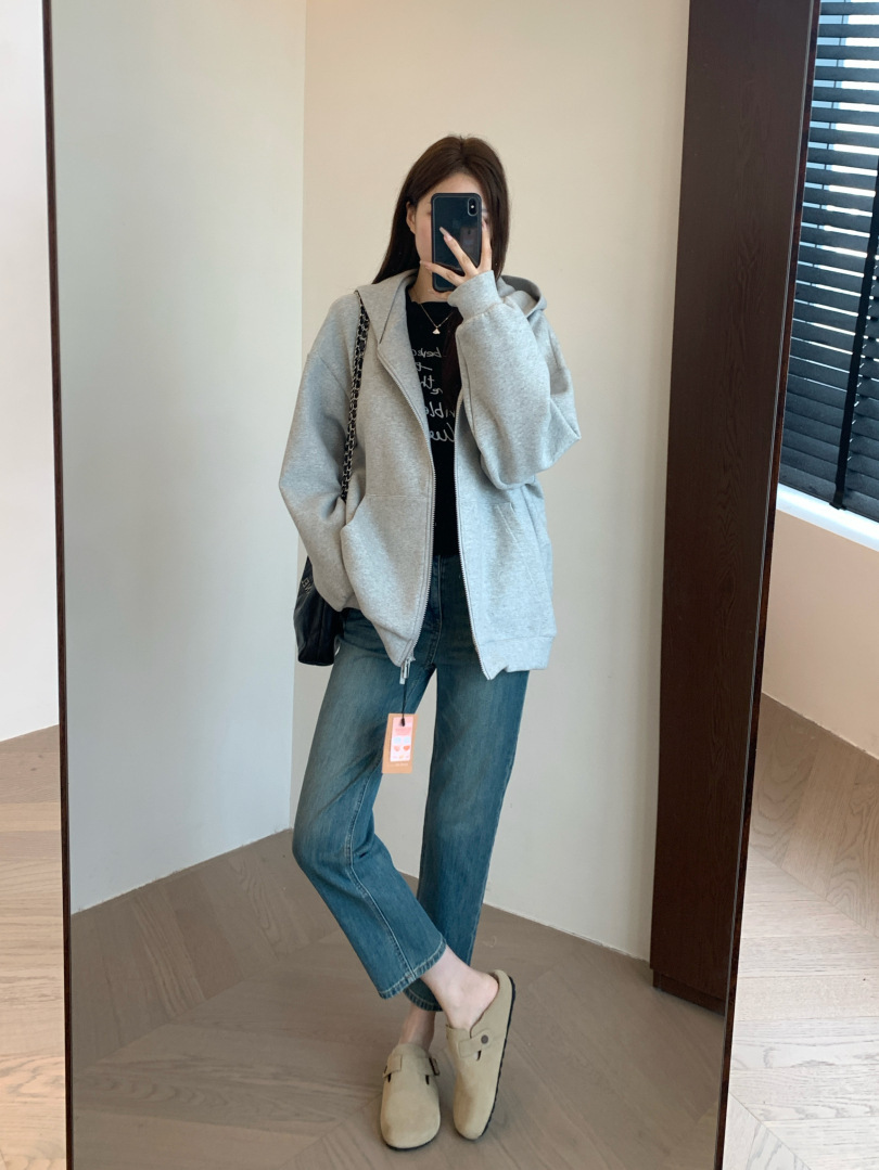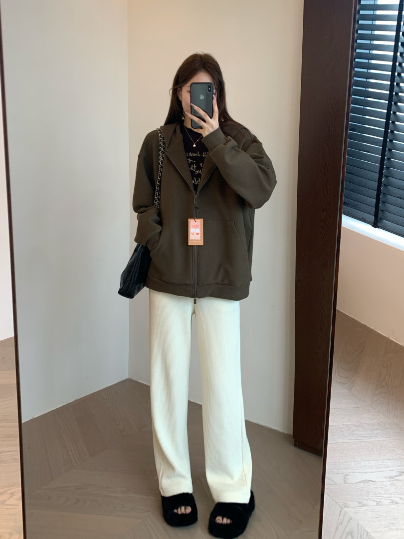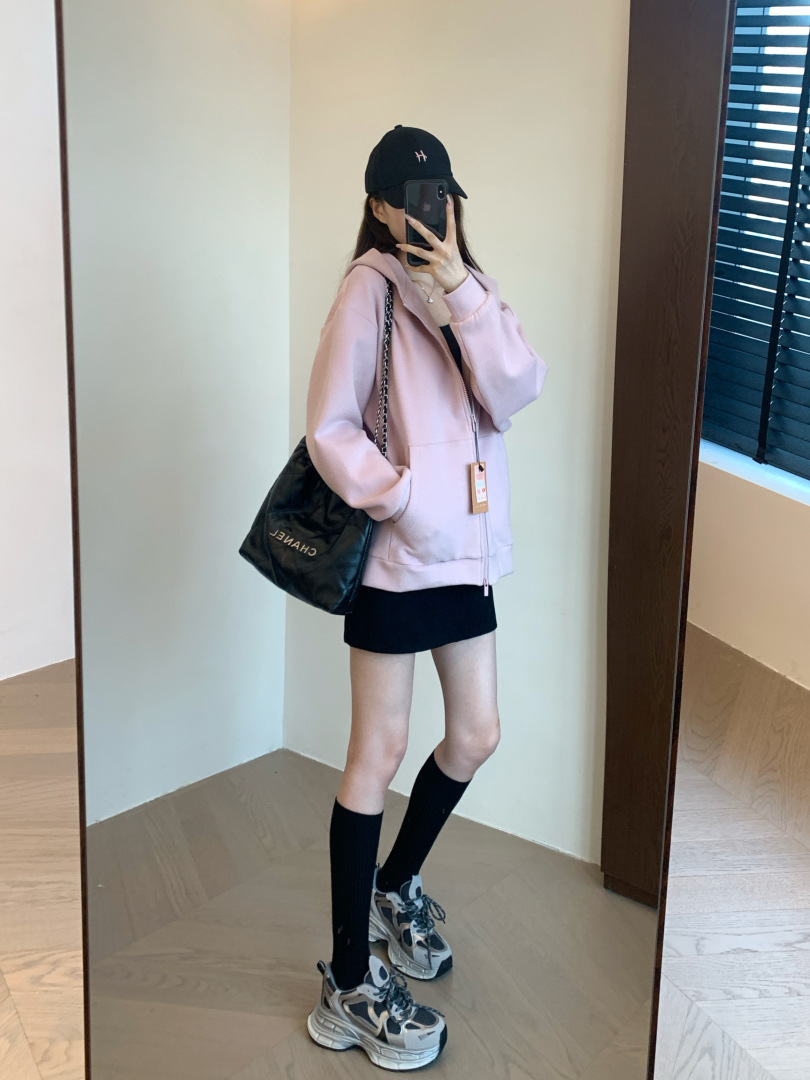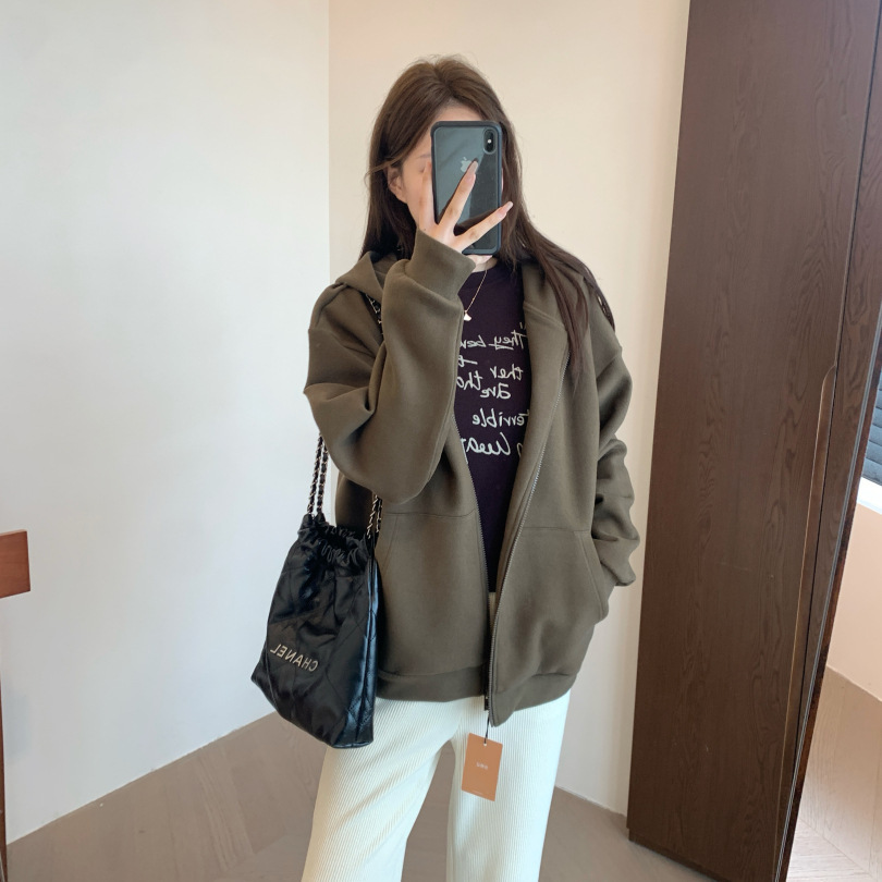 面料柔软又有型,上身遮肉显瘦!帽子也很立体!