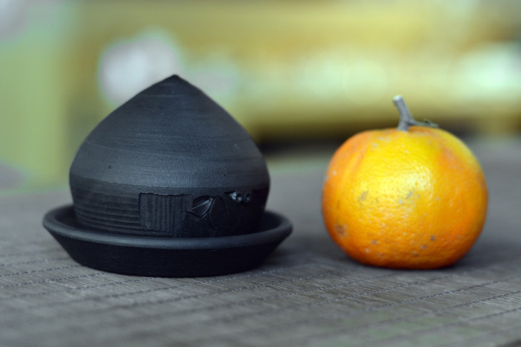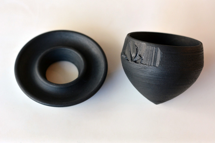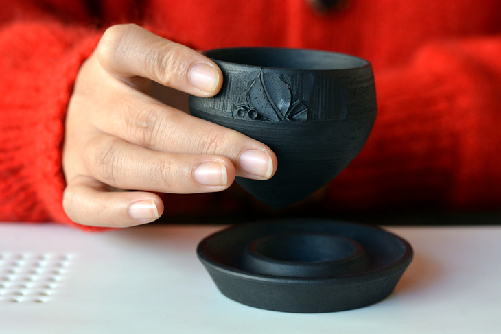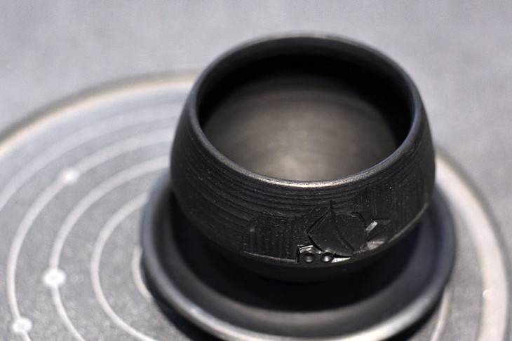 景素联合云南省级黑陶工艺美术大师林斌老师,推出双重非物质文化遗产的原创器型:黑陶陀螺套杯,现在签名定制。