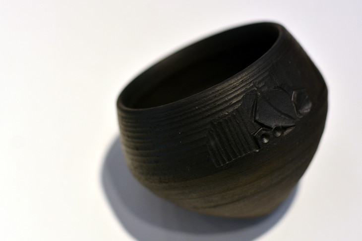 其黑陶作品雕工扎实,原创图案充满巧思而惟妙惟肖。