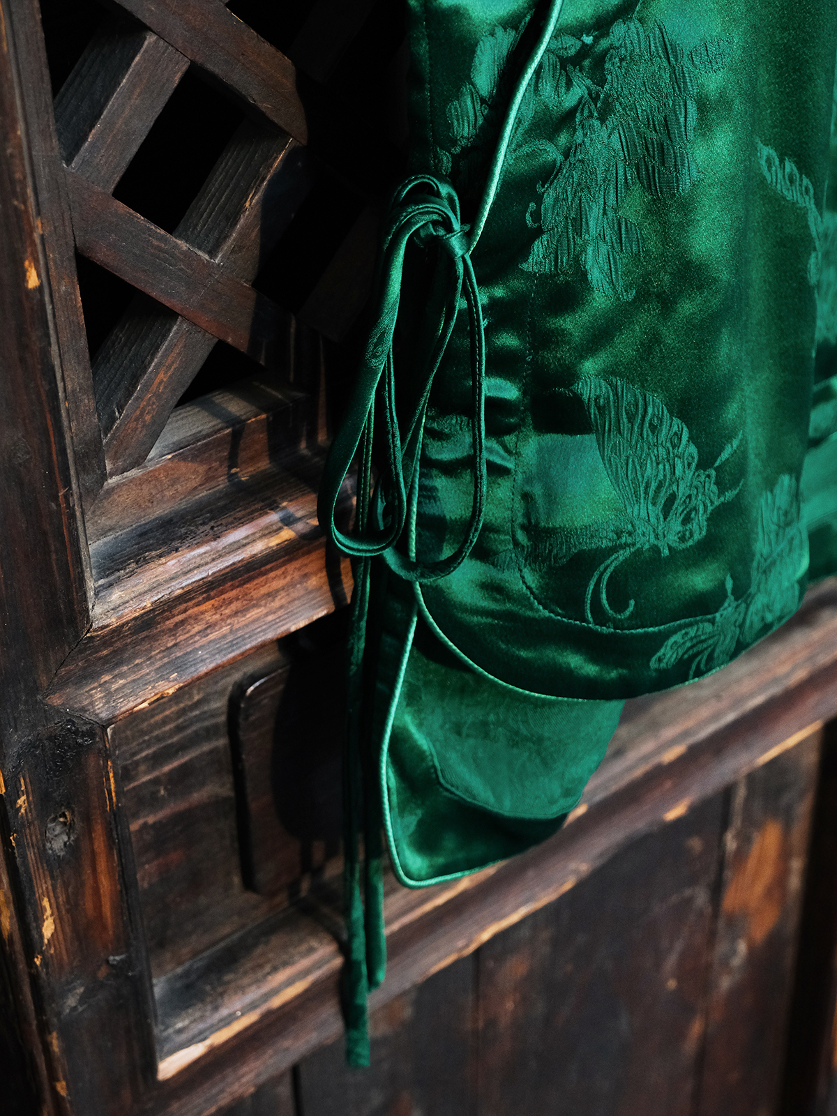 盛唐牡丹 |老工艺花蕾缎真丝马甲正反两穿