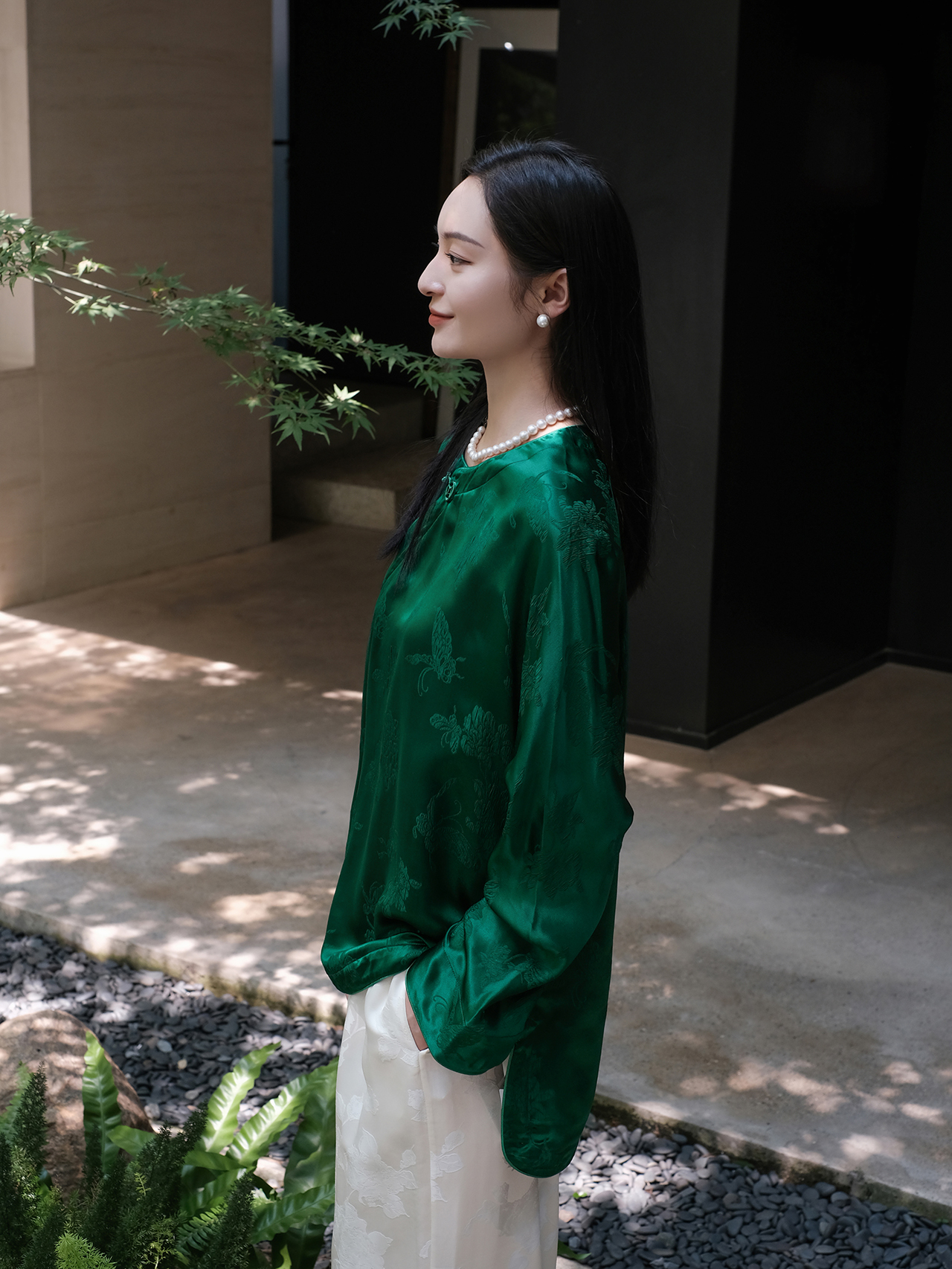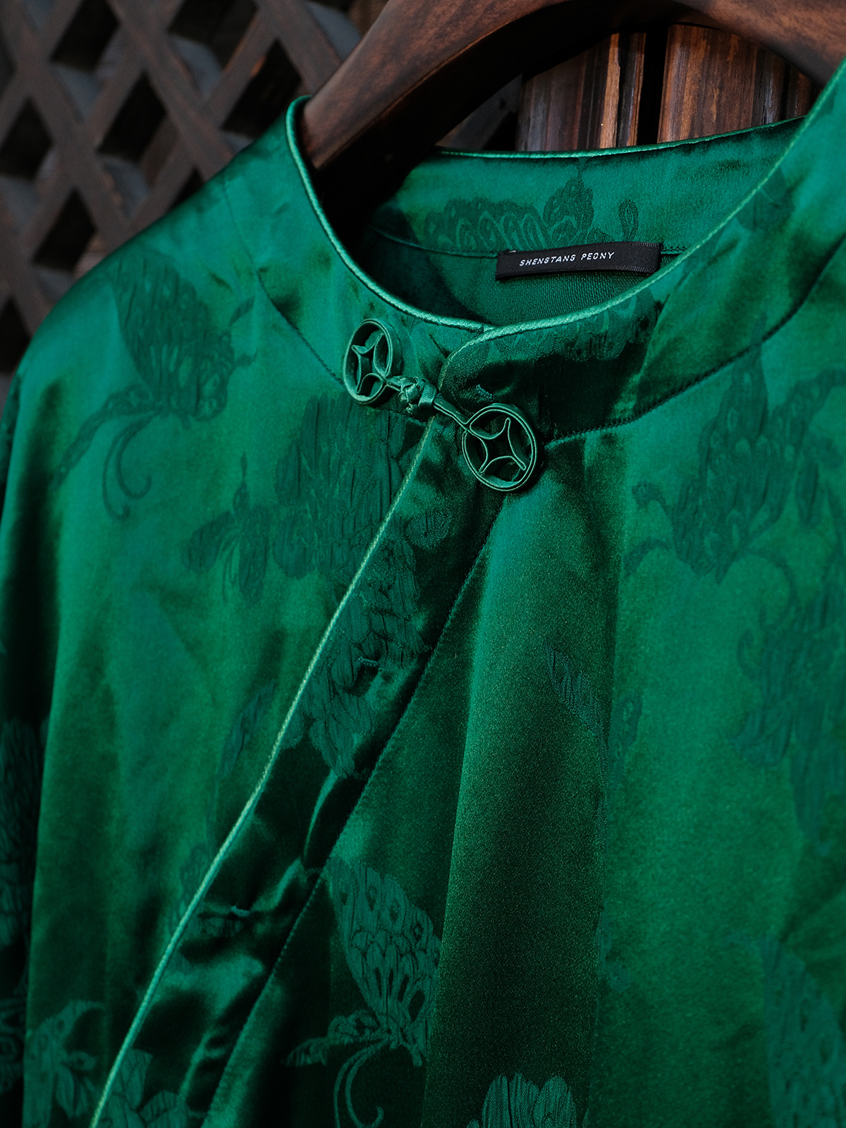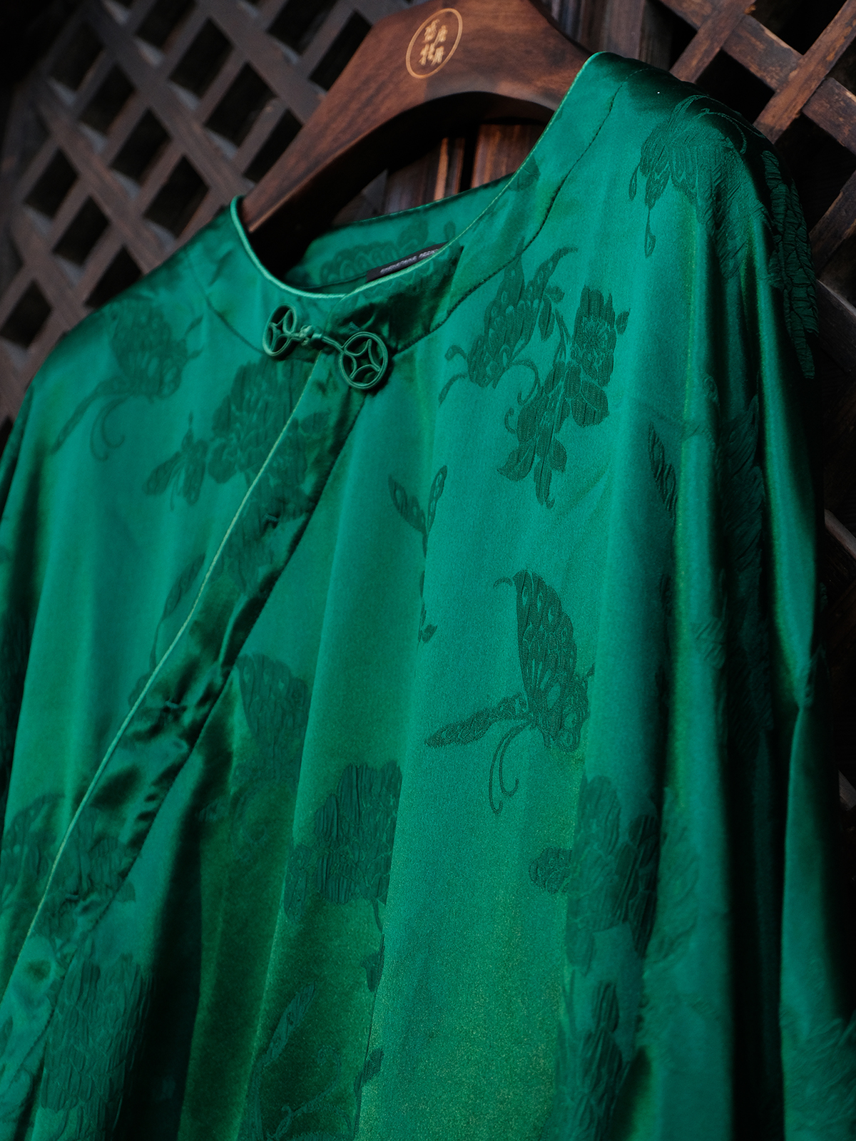 盛唐牡丹 |真丝提花蝶恋花偏襟上衣