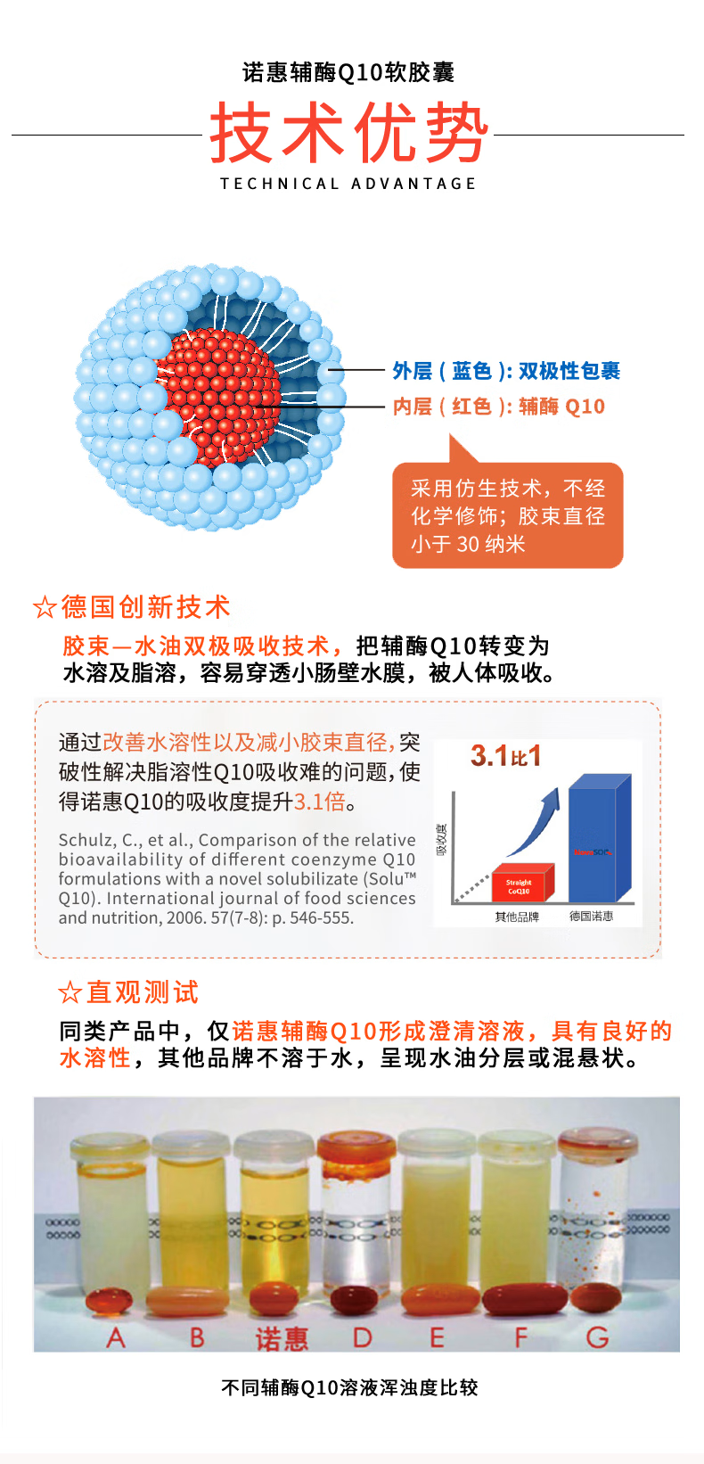 诺惠牌辅酶Q10软胶囊德国原装进口水溶辅酶q-10软胶囊30粒装