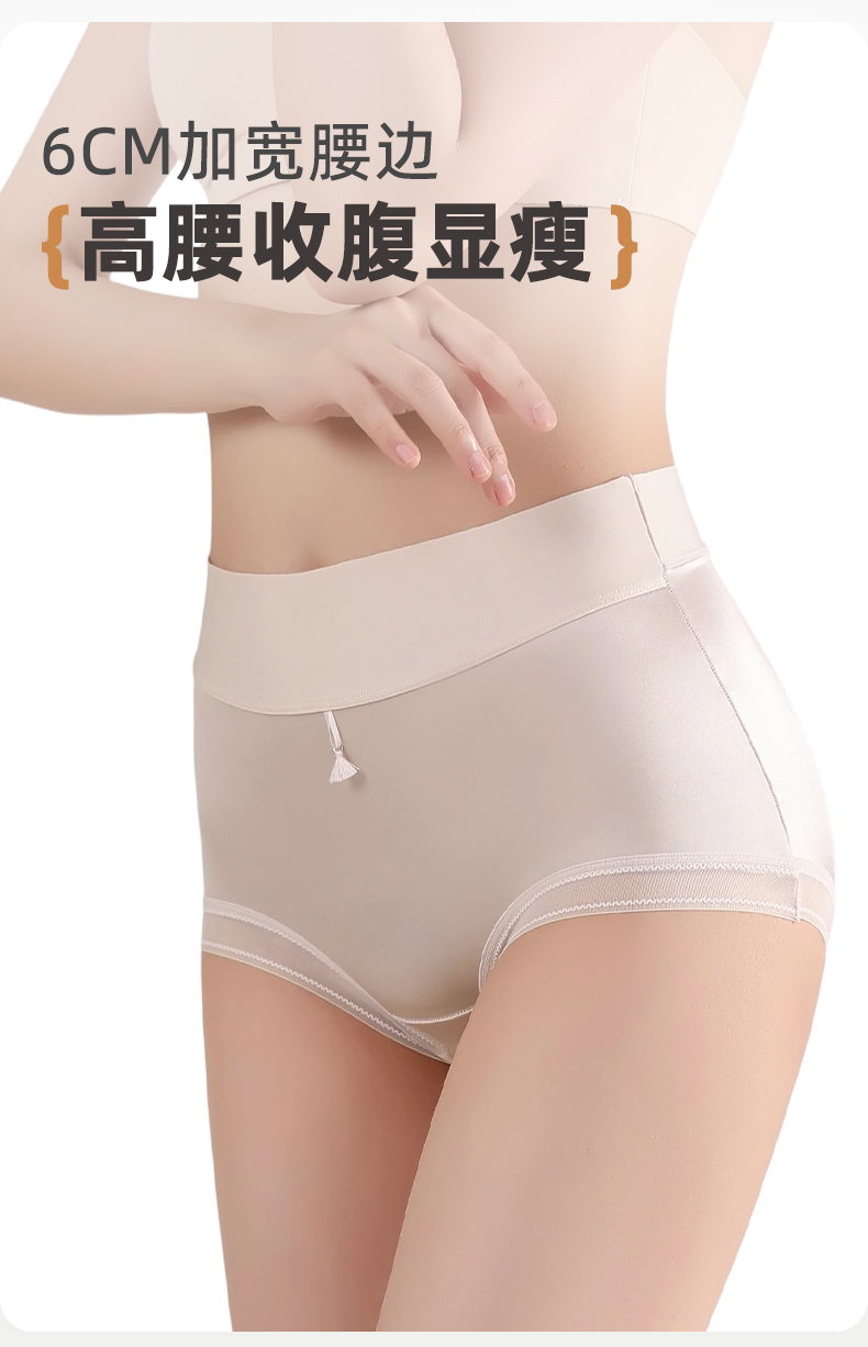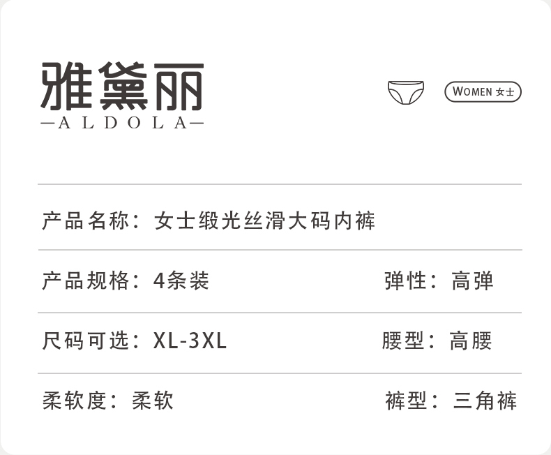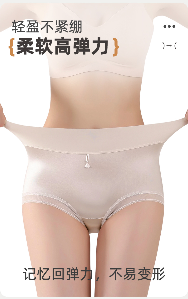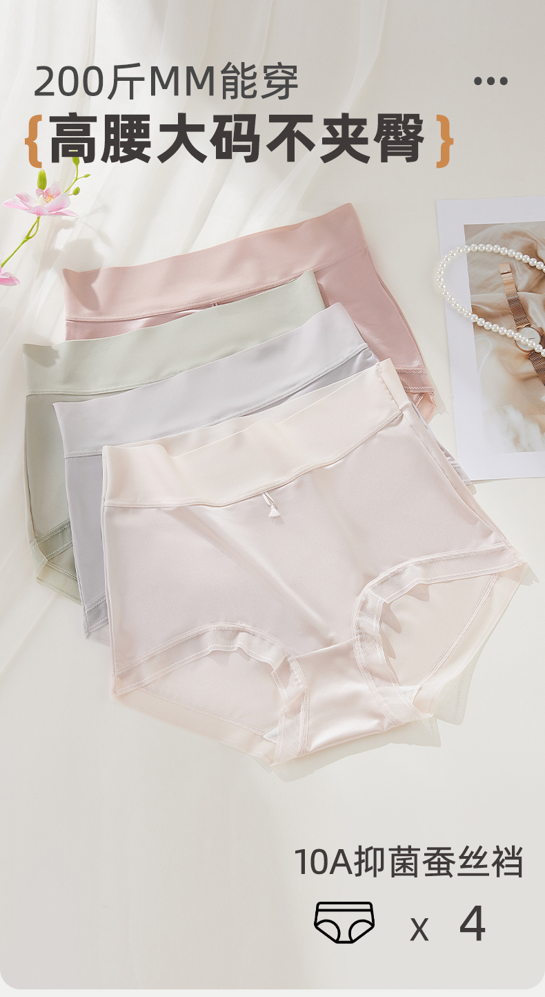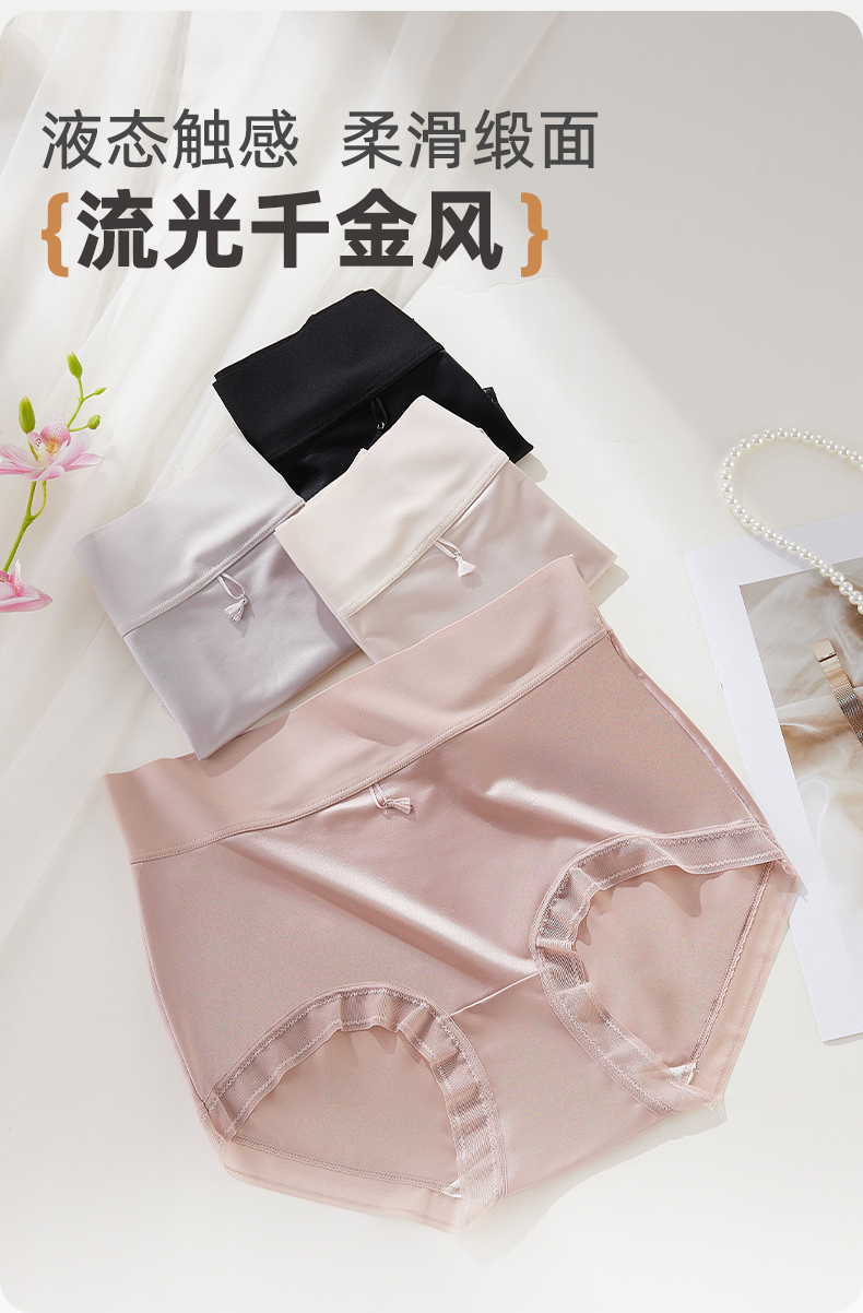 【4条装】雅黛俪女士高级质感缎面内裤高腰收腹提拉10A抑菌商蚕丝裆底大码裤头