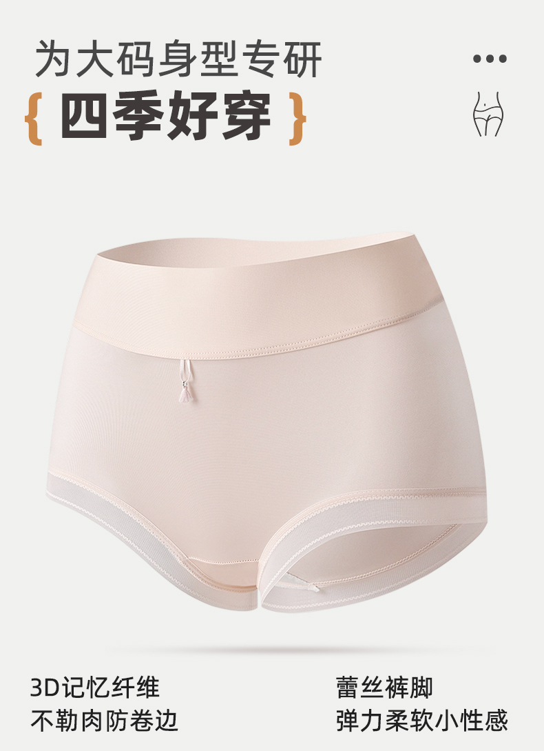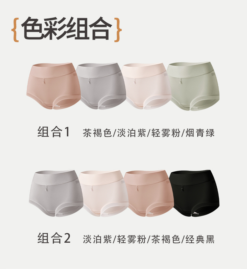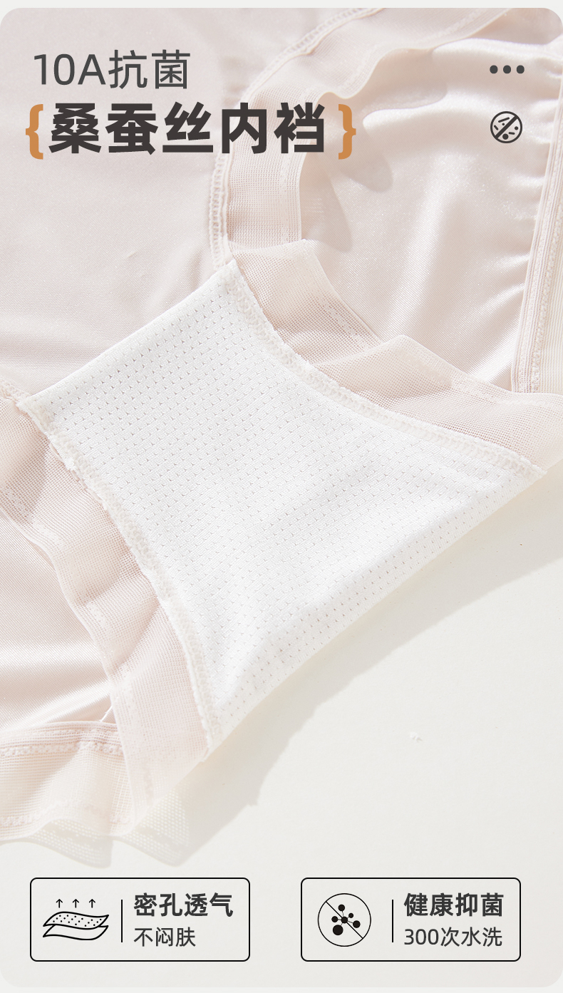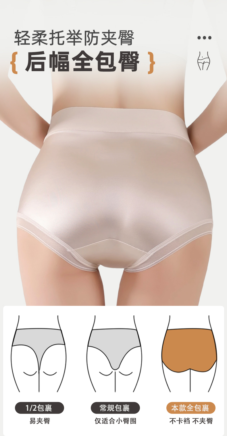【4条装】雅黛俪女士高级质感缎面内裤高腰收腹提拉10A抑菌商蚕丝裆底大码裤头