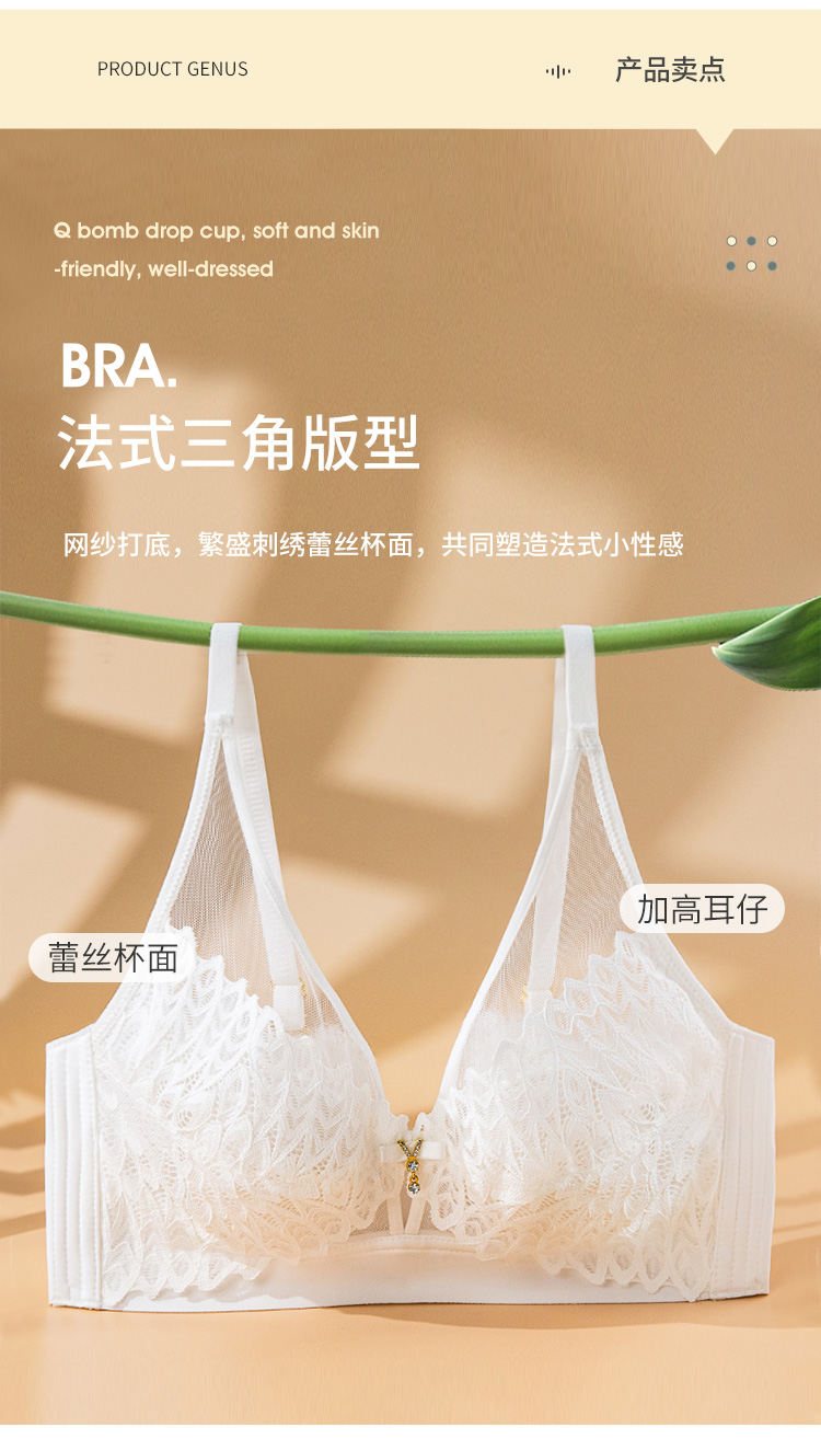 雅黛丽内衣女夏超薄款显小无钢圈文胸防凸兔耳杯蕾丝薄杯白色胸罩