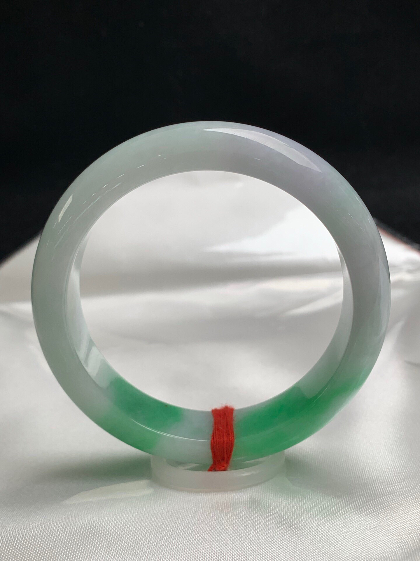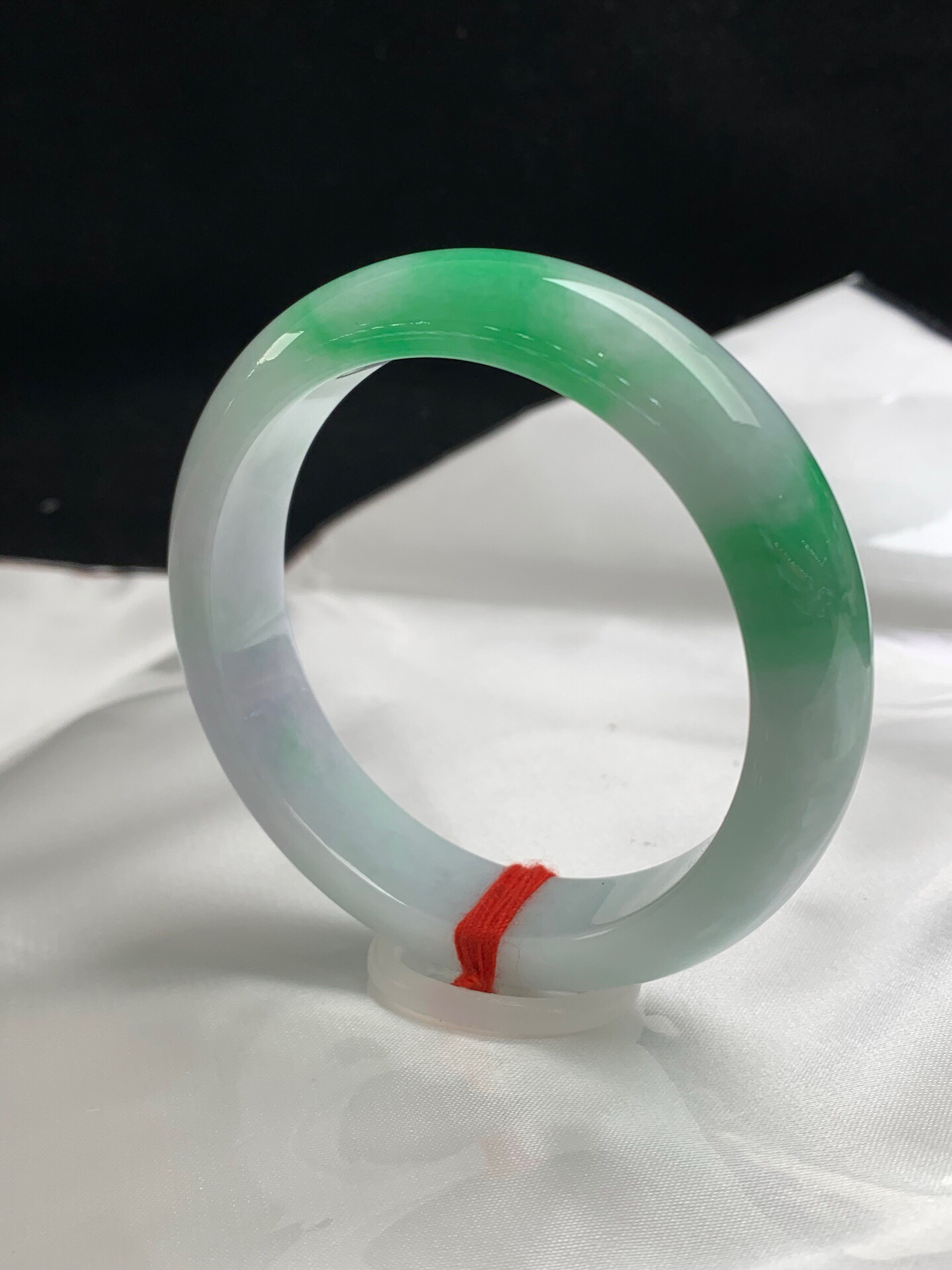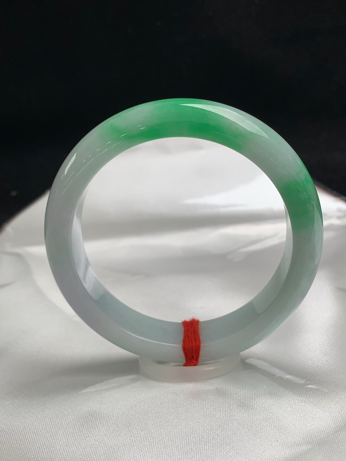 612470,59圈口,飘绿正圈平安镯,白底飘阳绿,条形厚装,底子细腻,完美,尺寸:58.9-14.7-8.8,超值价💰67500 #优石客珠宝#香玉荟萃