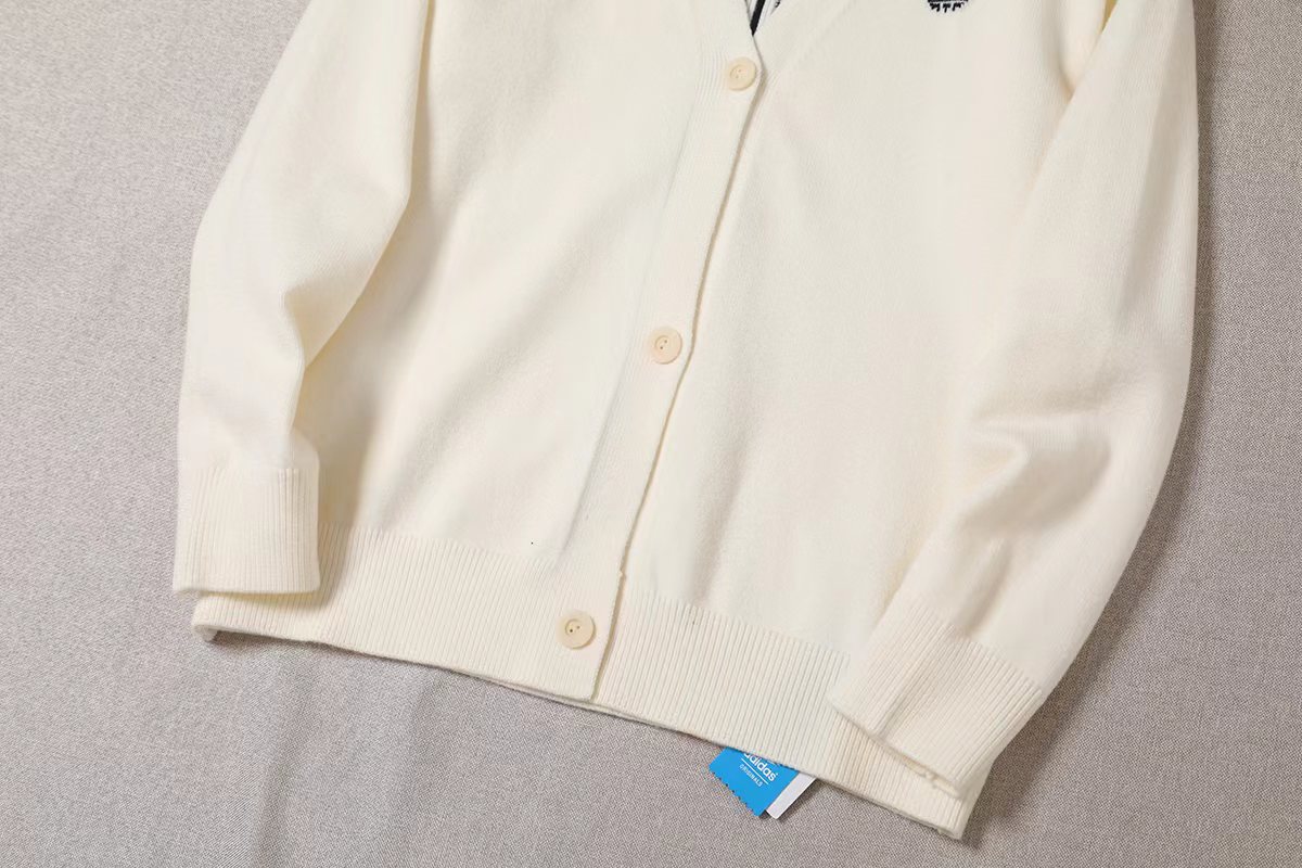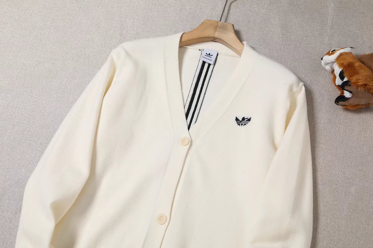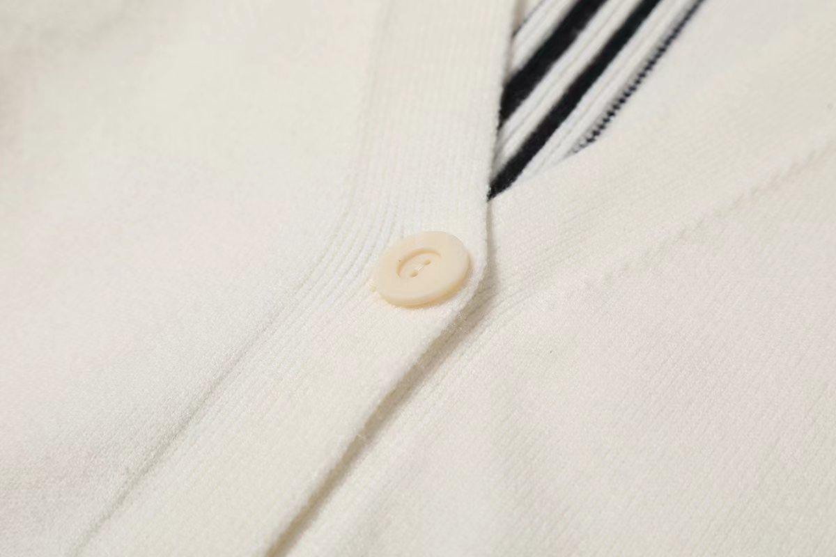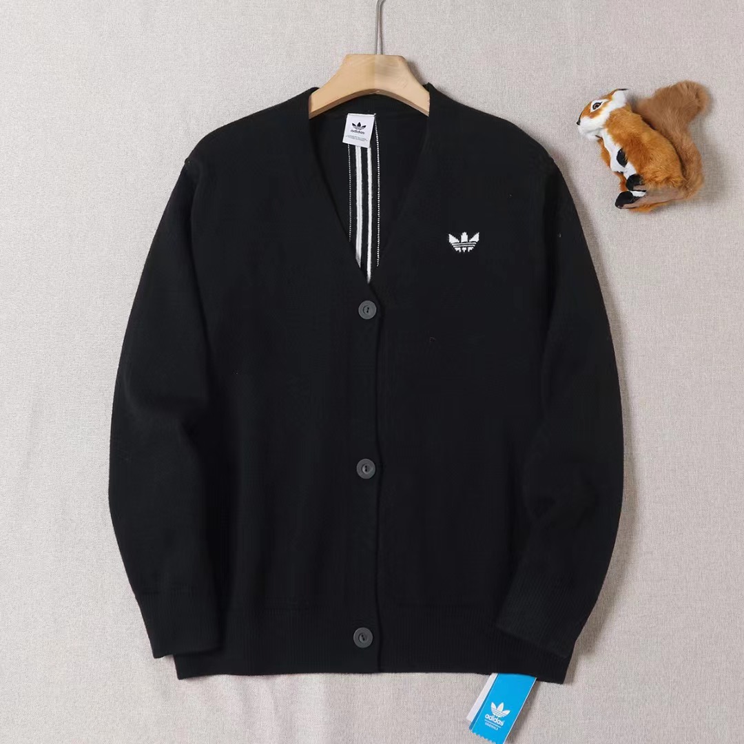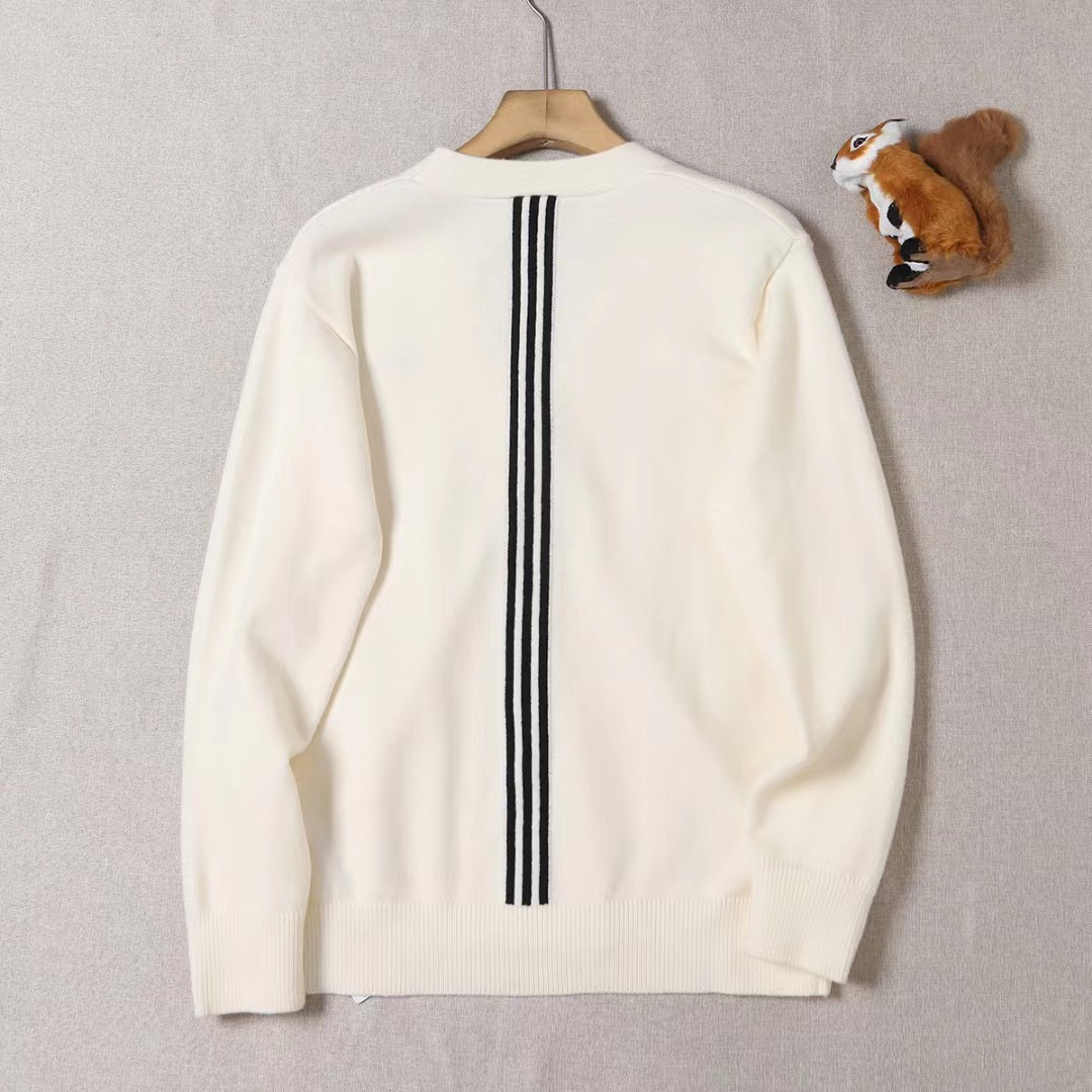 毛衣开衫V领+排扣设计超显瘦!男女同款,胸口精zhi刺绣logo,质感满分不说 辨识度直接拉满。醉爱后背的三条杠设计转身瞬间才是亮点!走在街上回头率爆表 朋友都说这件超有型。晴纶包芯纱的材质绝了,上身柔和亲肤 一点都不扎 舒适度可以打满分!搭配运动裤是慵懒休闲风,配牛仔裤又能穿出街头感,一件毛衣多种风格随意切换