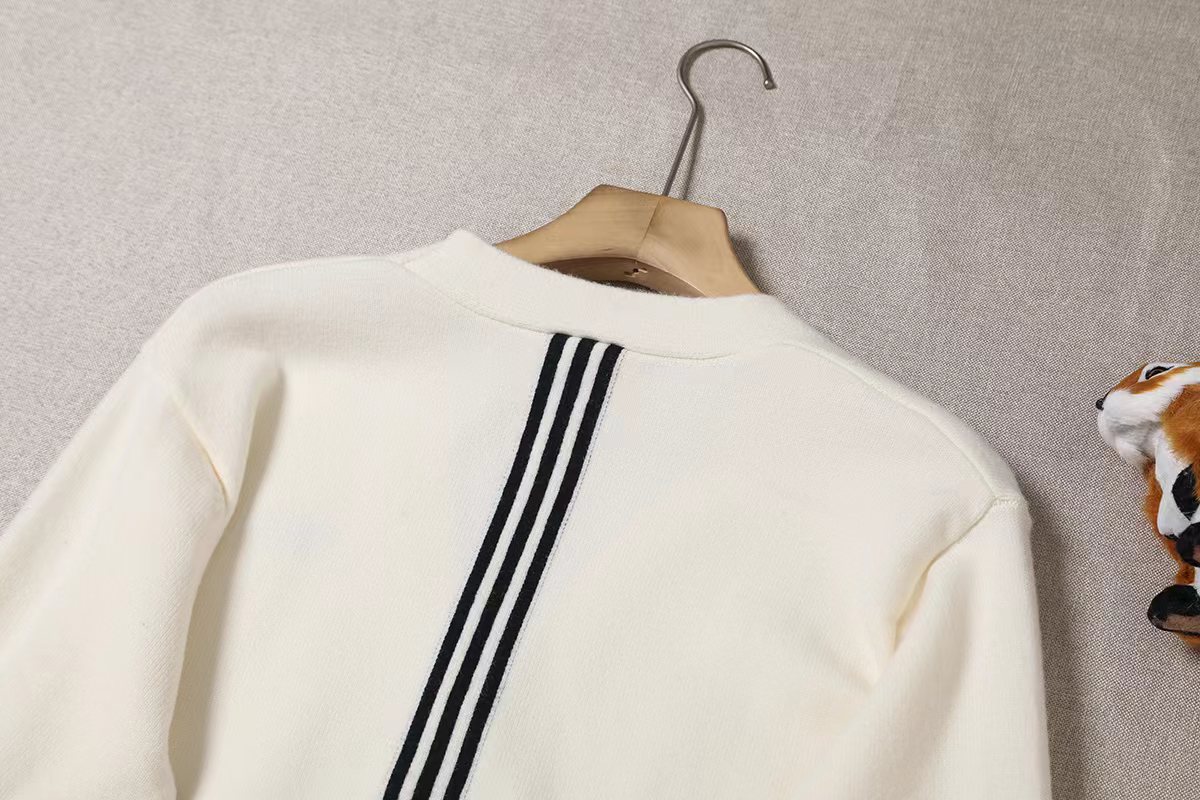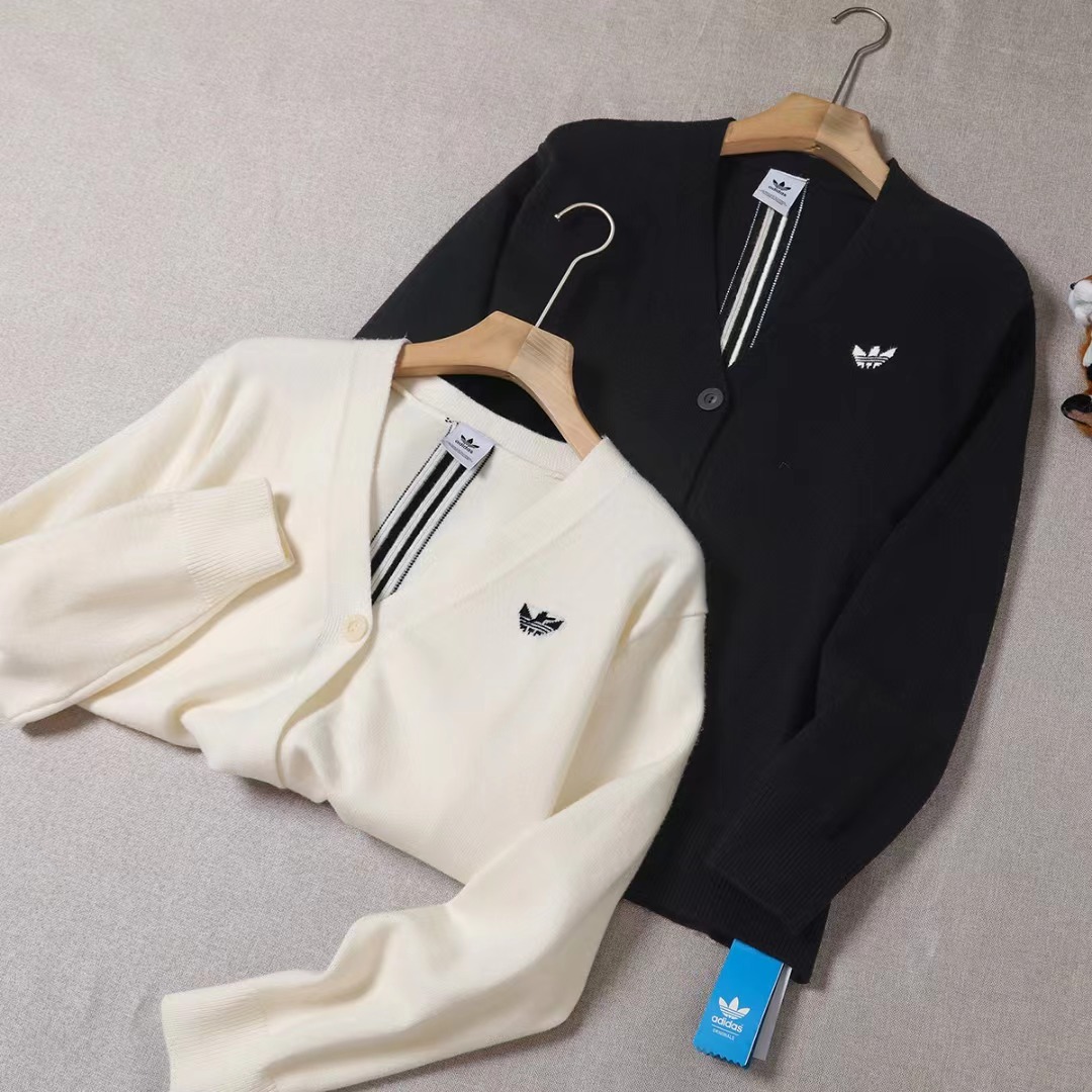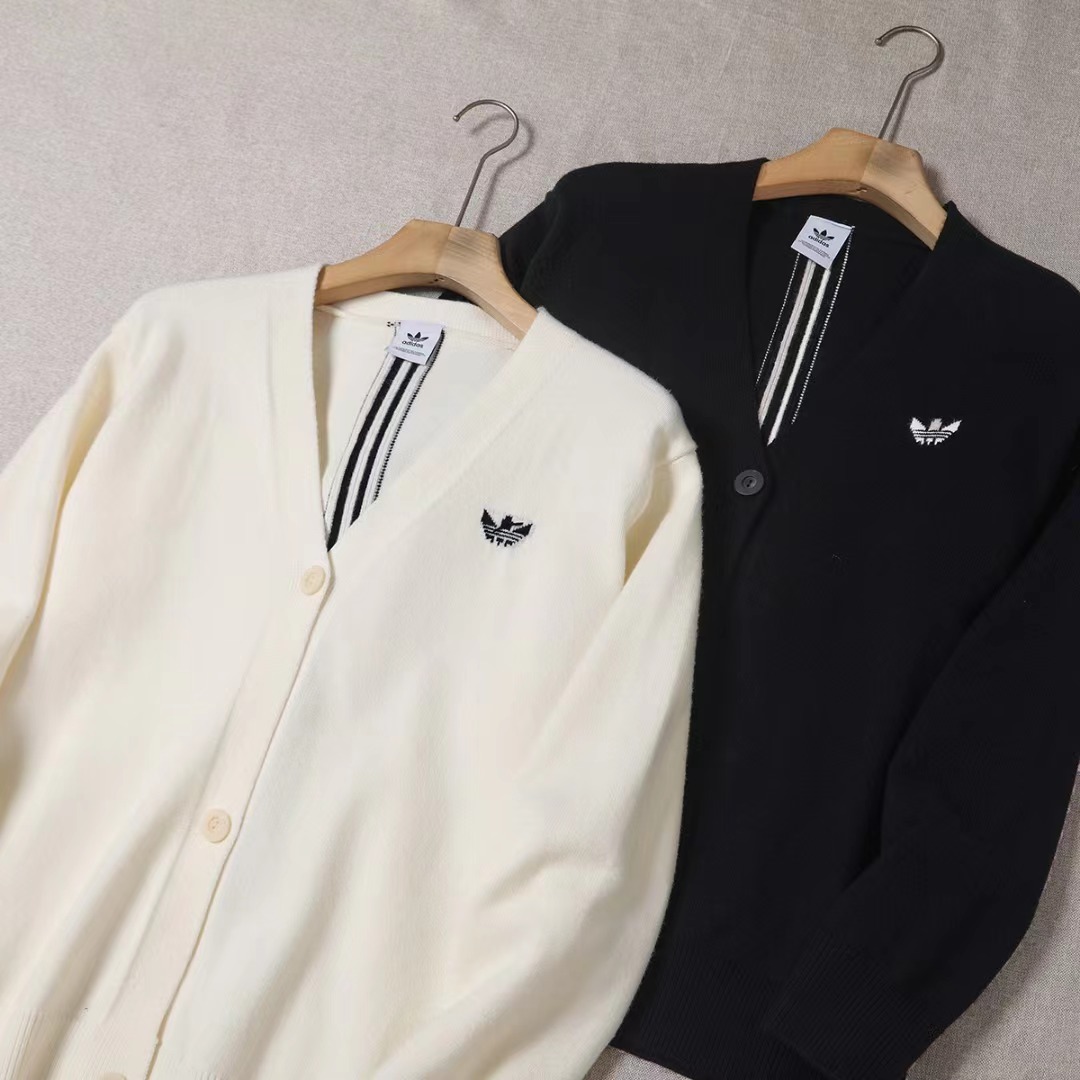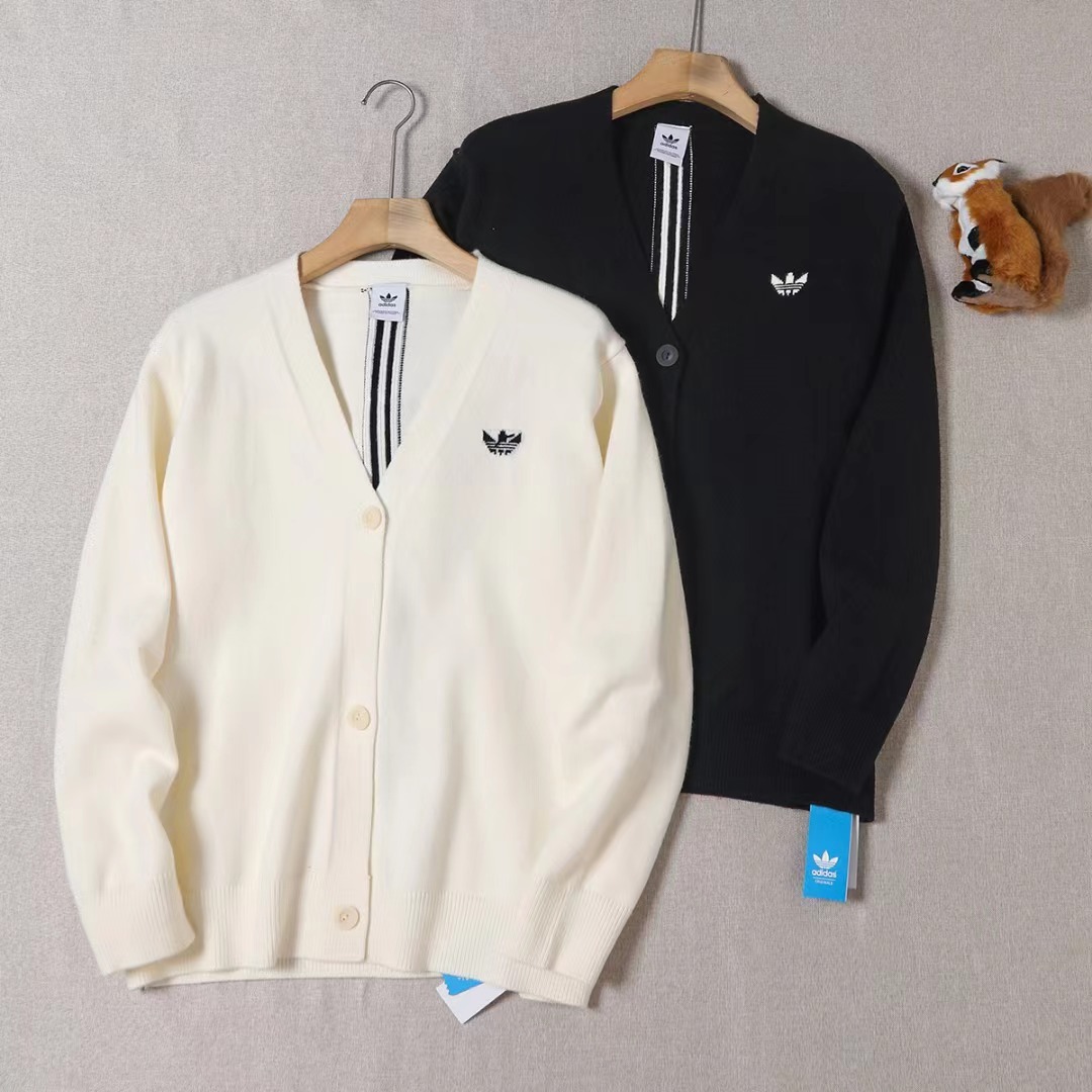 毛衣开衫V领+排扣设计超显瘦!男女同款,胸口精zhi刺绣logo,质感满分不说 辨识度直接拉满。醉爱后背的三条杠设计转身瞬间才是亮点!走在街上回头率爆表 朋友都说这件超有型。晴纶包芯纱的材质绝了,上身柔和亲肤 一点都不扎 舒适度可以打满分!搭配运动裤是慵懒休闲风,配牛仔裤又能穿出街头感,一件毛衣多种风格随意切换