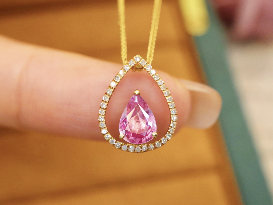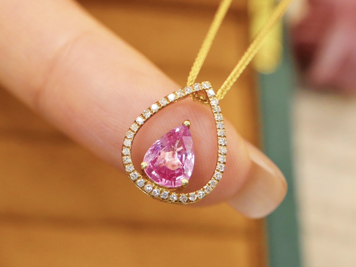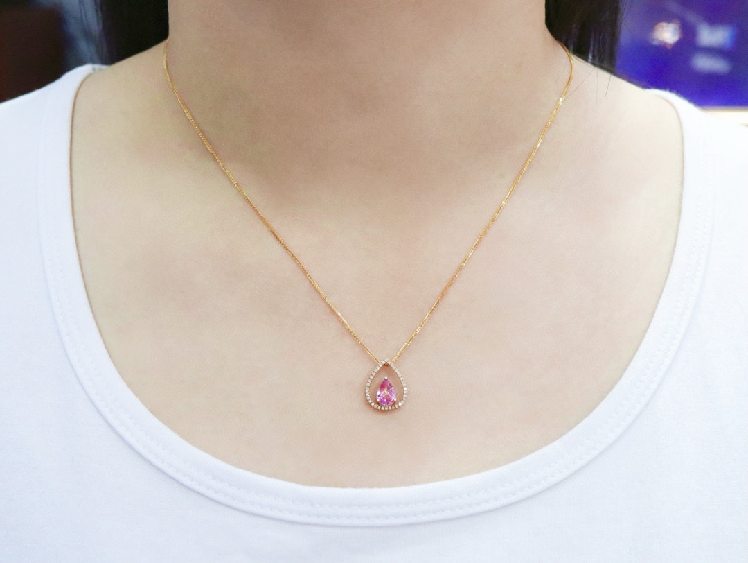 D523160 无烧帕帕拉恰蓝宝石吊坠 石重:0.86ct,总重:0.98g,钻石:0.111ct/37颗,吊坠:不含链子 18K黄金,真金真钻石 特价:2700