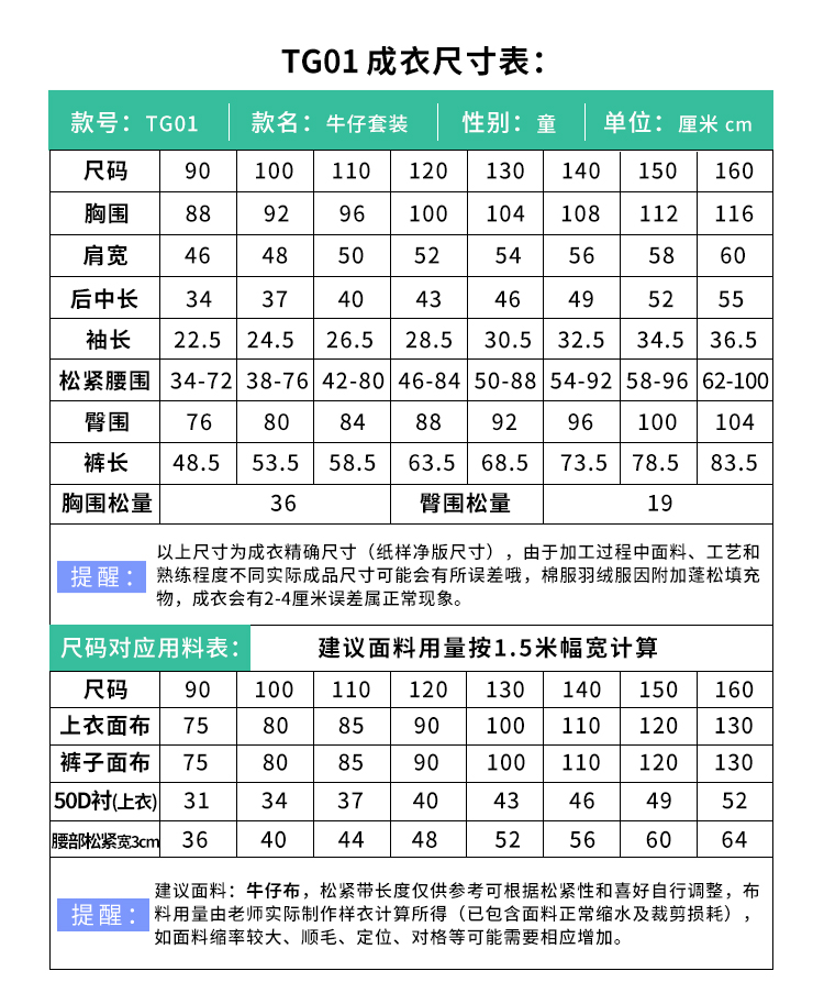 裁缝学苑 TG01韩版牛仔两件套1:1实物服装纸样图纸牛皮纸样已切割