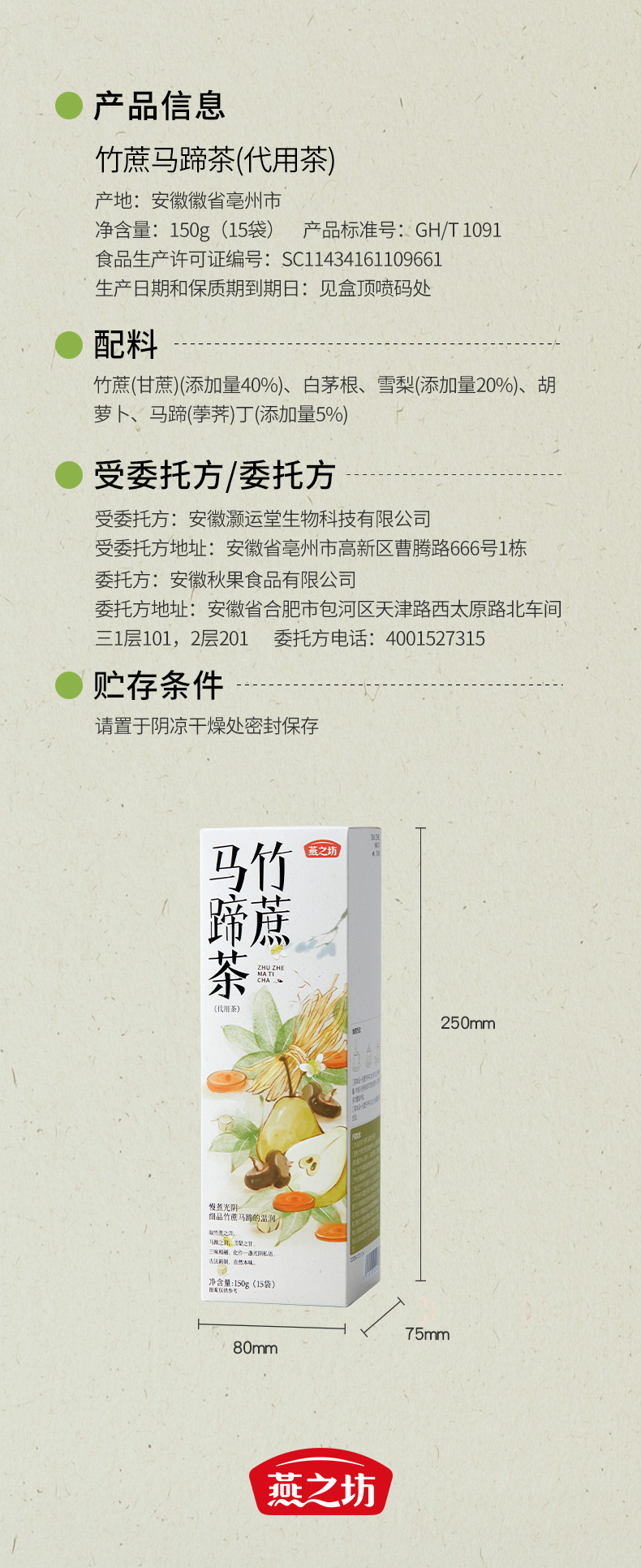 【商城专属】燕之坊竹蔗马蹄茶150g