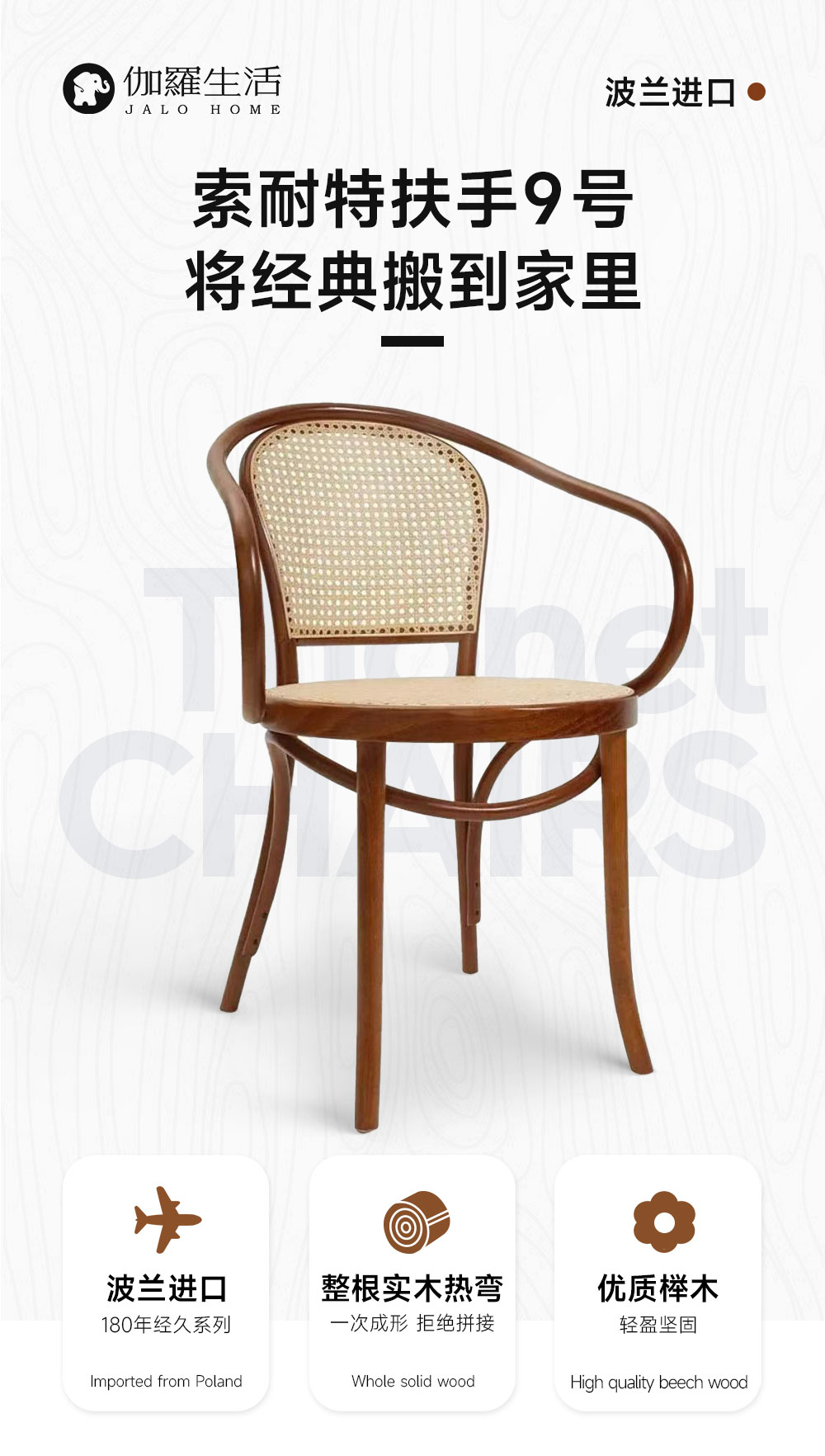 波兰进口-索耐特9号扶手椅藤背版