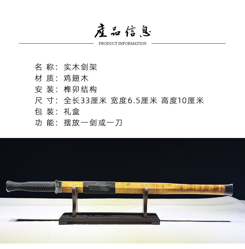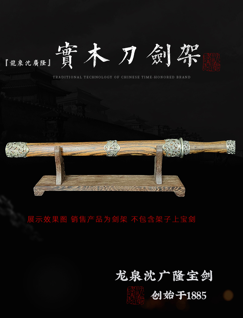 剑架 剑托 龙泉沈广隆刀剑架 宝剑架子 实木剑架 斜横架 展示架