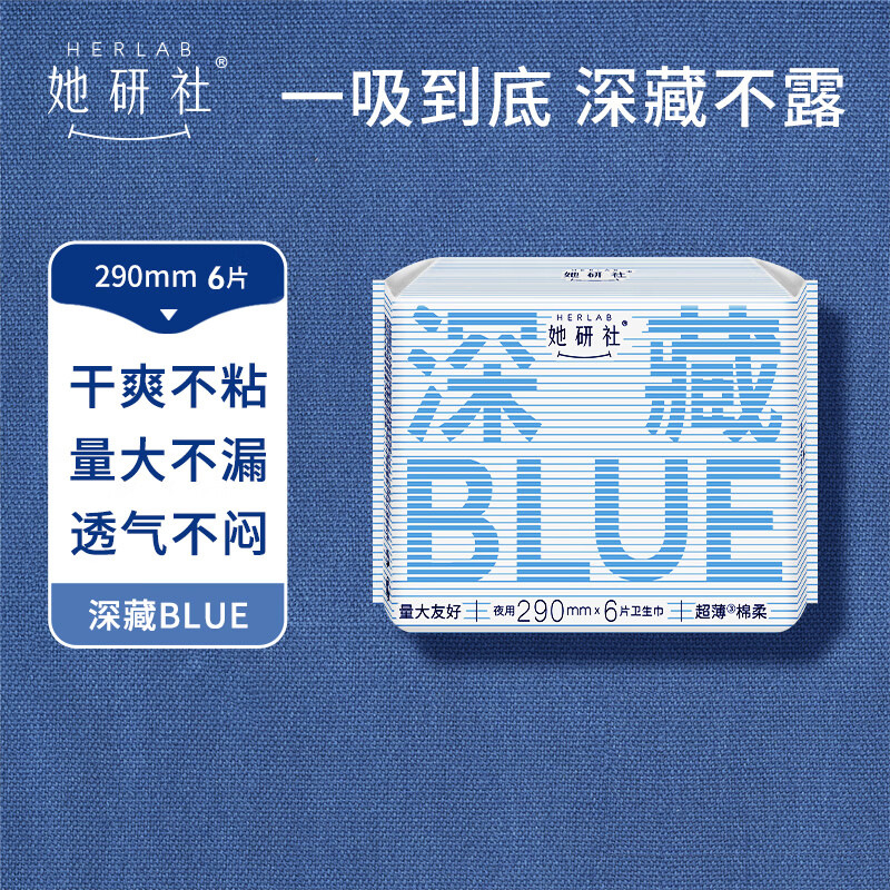 她研社卫生巾290mm*6片/包 深藏BLUE夜用超薄绵柔姨妈巾