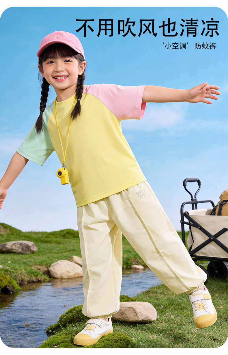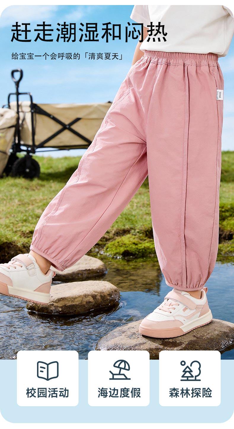 贝贝怡童装女童休闲长裤轻薄夏季防蚊裤中大童束脚裤儿童运动裤子ZB2FK008