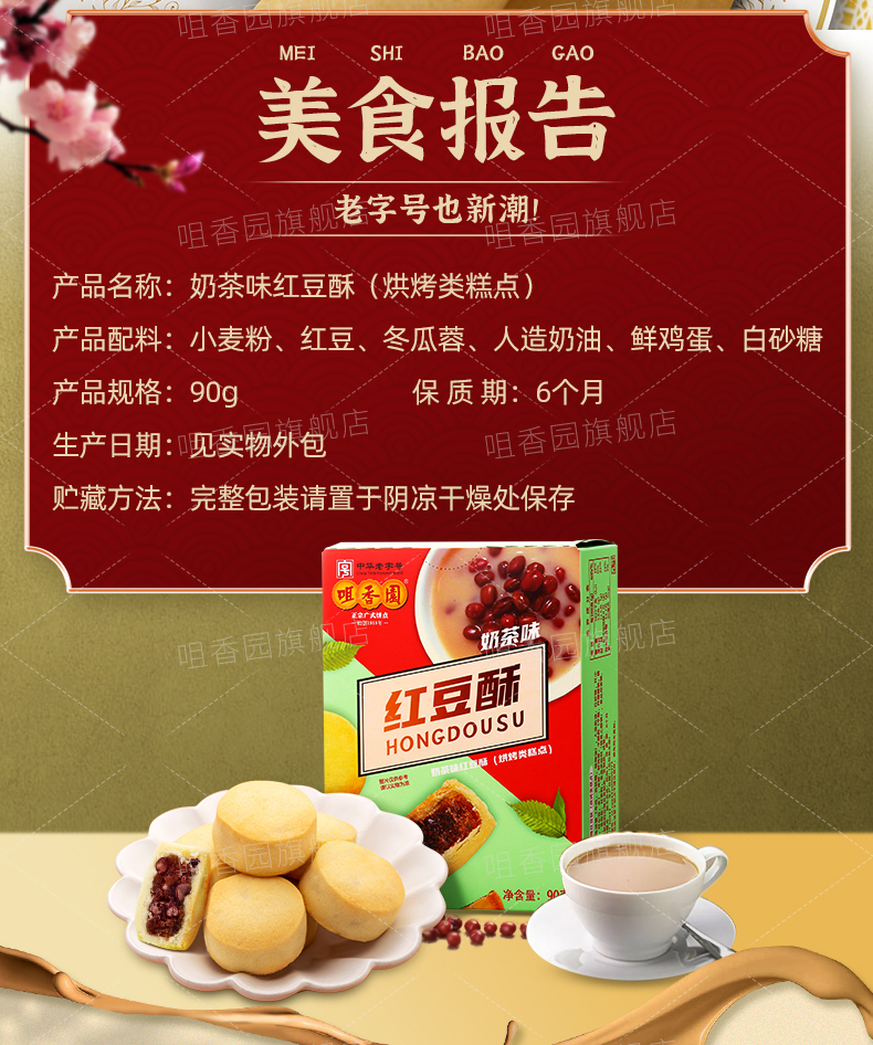 咀香园红豆酥 新款酥饼广东中山特产美食下午茶奶茶味红豆酥90g