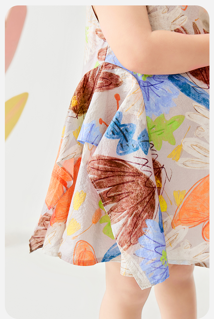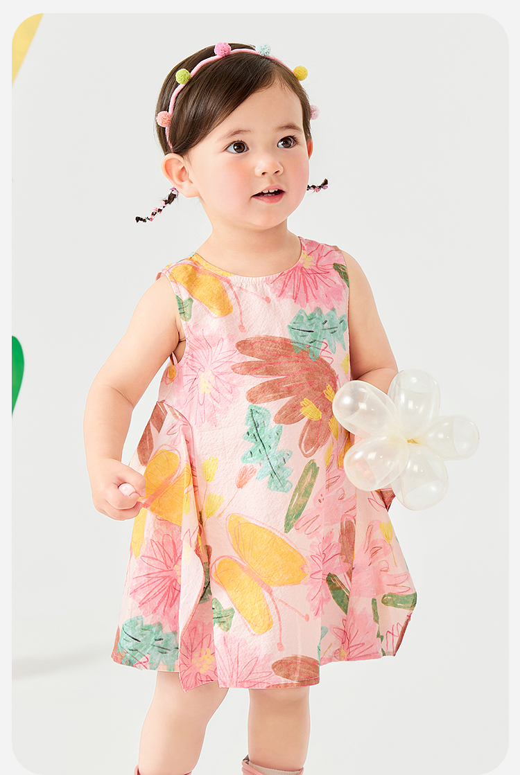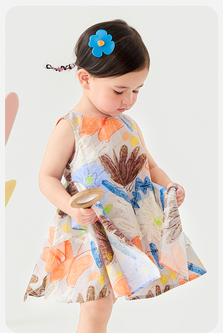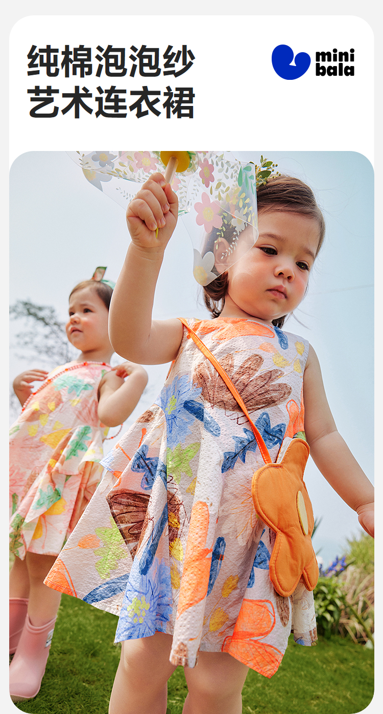 迷你巴拉纯棉连衣裙女童儿童泡泡纱透气甜美A摆艺术无袖