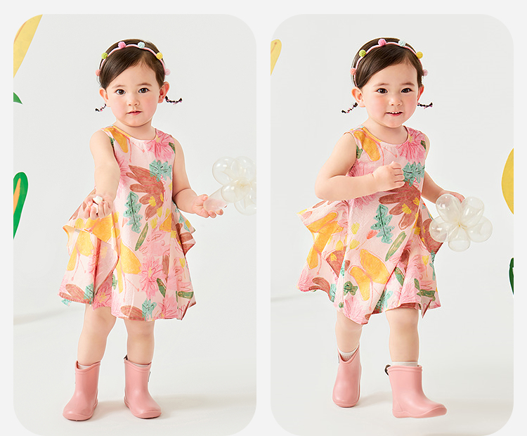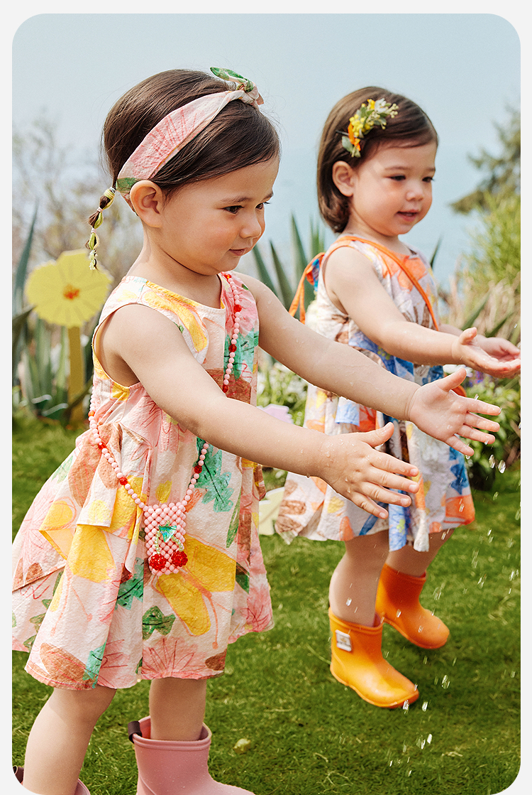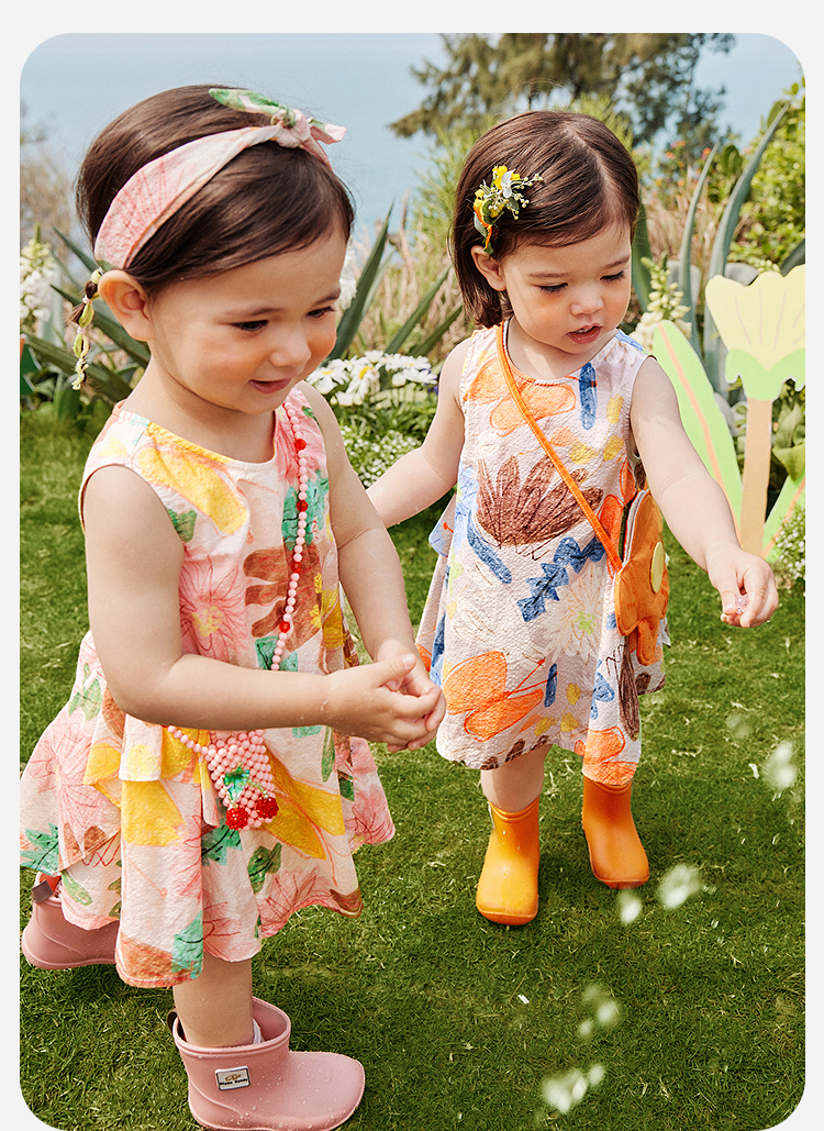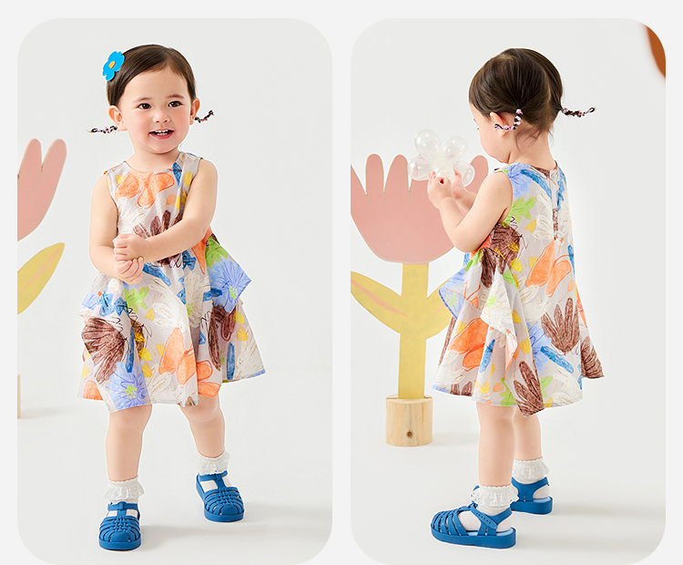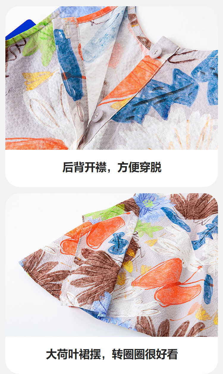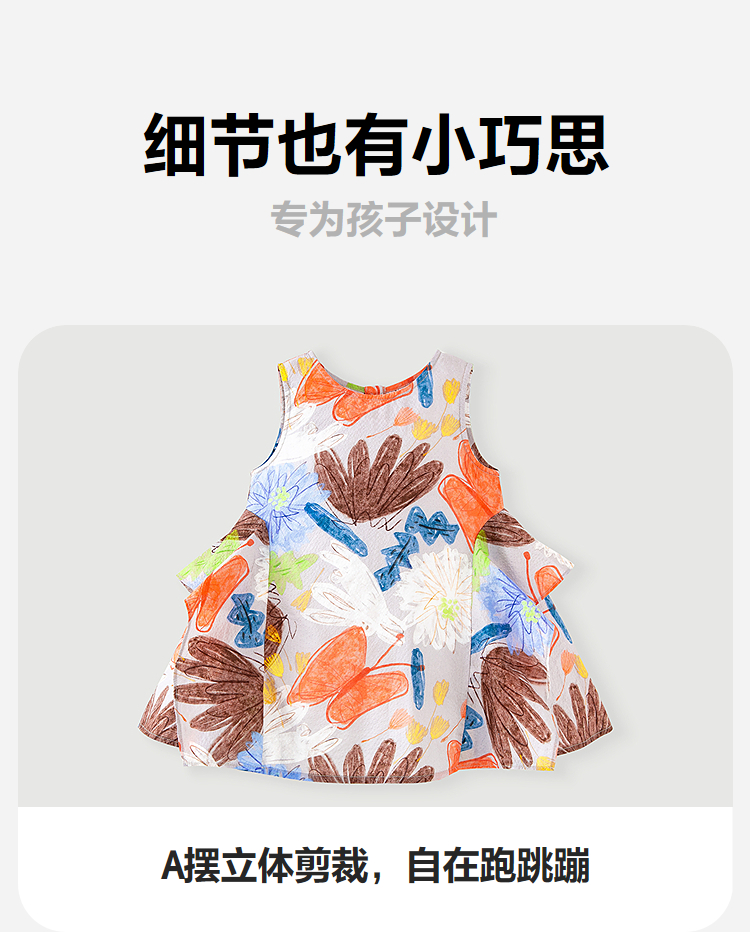 迷你巴拉纯棉连衣裙女童儿童泡泡纱透气甜美A摆艺术无袖