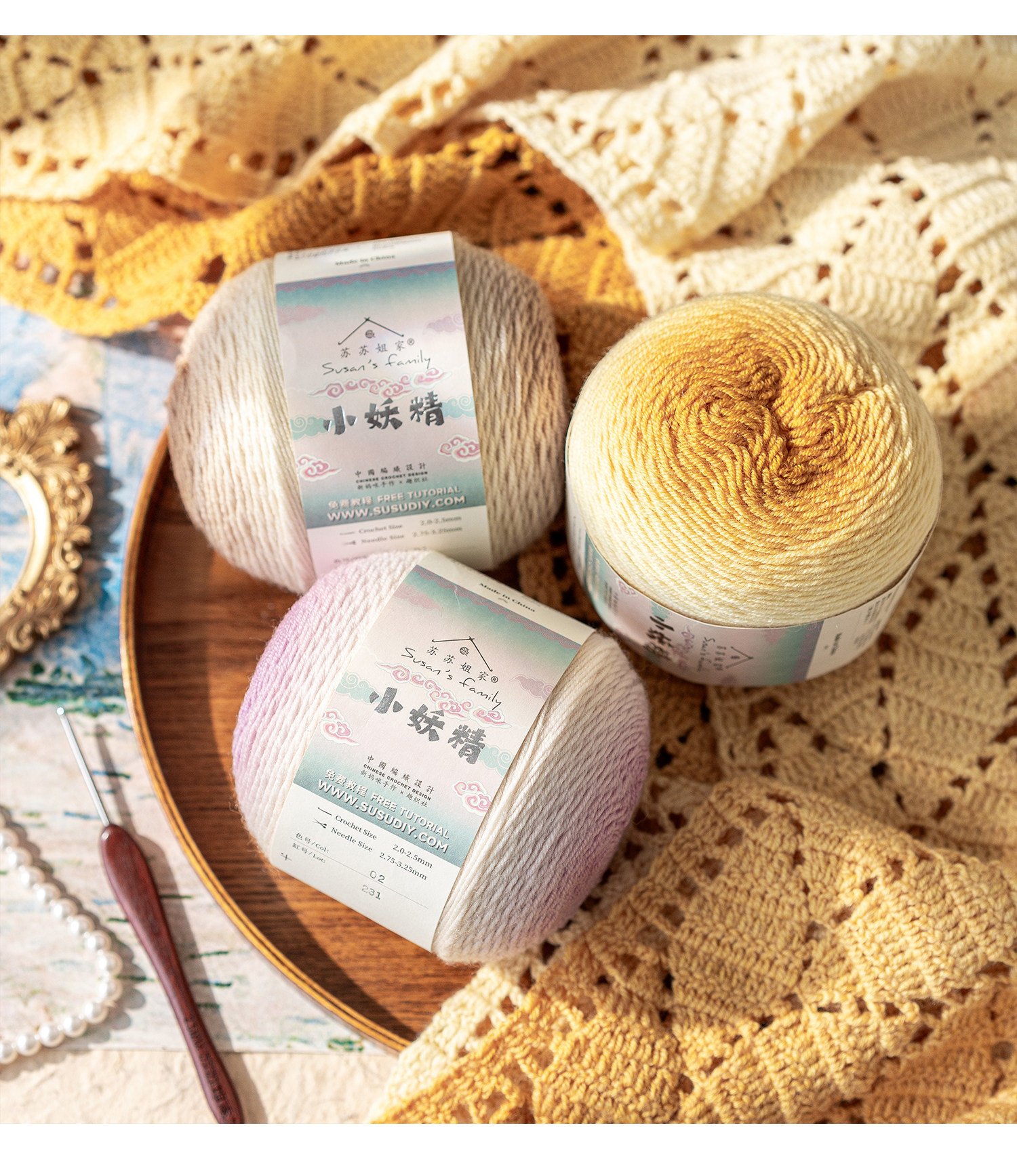 苏苏姐家小妖精长段染羊毛线钩针棒针宝宝毛衣围巾帽子编织毛线团