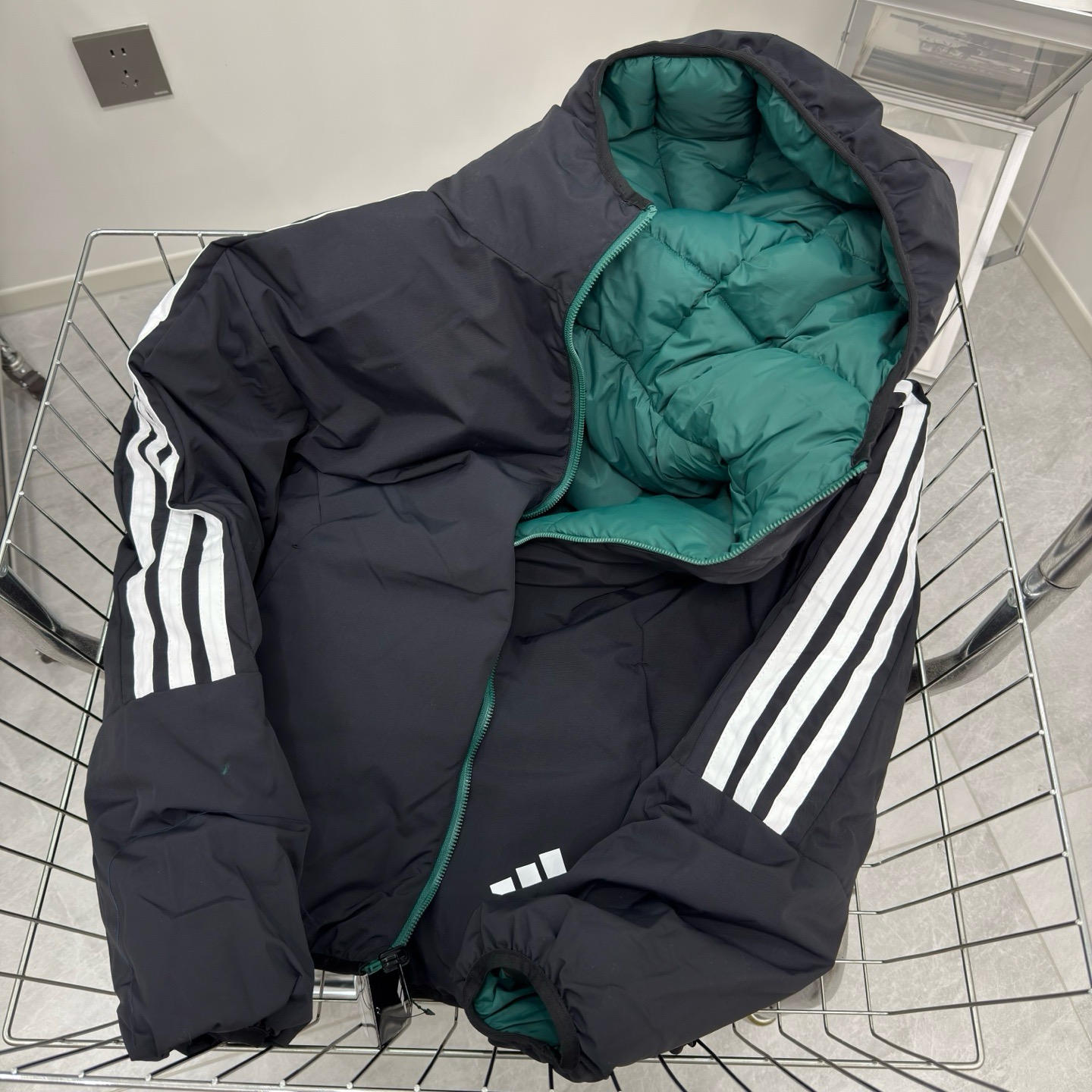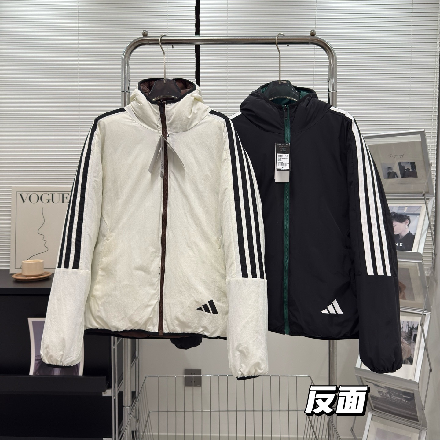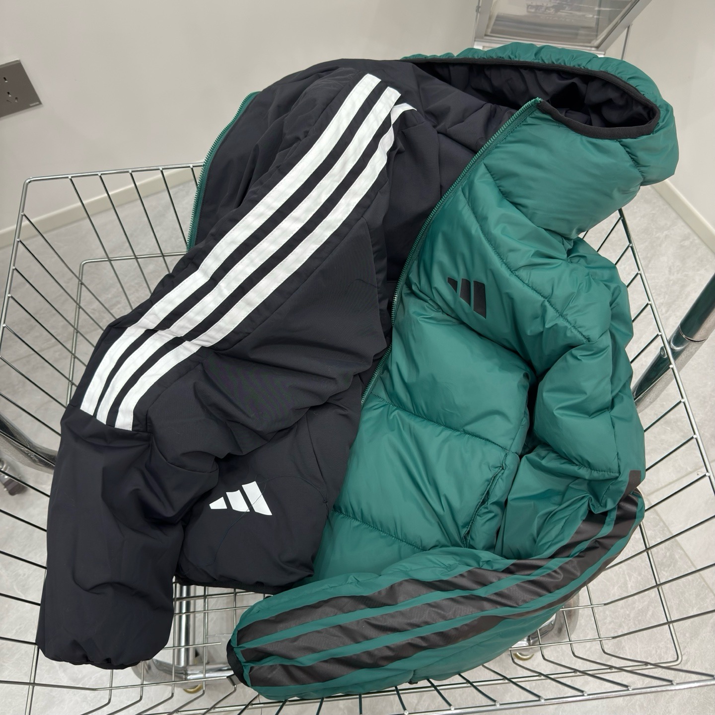 (双面穿棉服)三叶草25Ss双面穿男女同款棉服外套!ins 小红书推荐爆款!上半身宽松百搭!一面标志 一面三叶草大logo 可搭配多种风格,正反面都可以穿,相当于花一件衣服的钱两件衣服,内里进口手塞棉 摆脱毛绒烦恼!非常的保暖厚实!几个色都非常好看,也不挑人出门B备神器 这款的重 点就是双面哒[天啊] 保暖又防风 ,颜值超高 ,小哥哥小姐姐都可以驾驭,宽松版型,不挑身材穿,情侣醉佳选择,上身很显档次 一点都不显臃肿 超好搭配 强烈推荐啦~