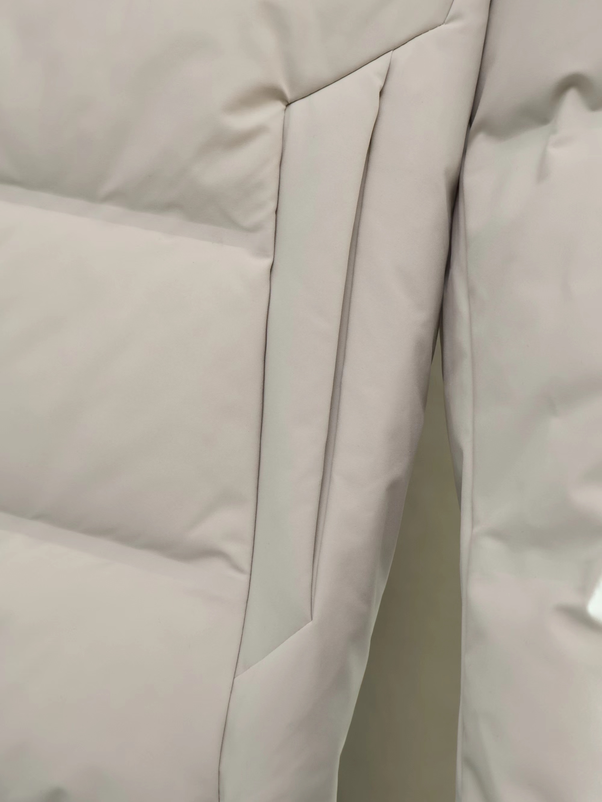 新款连帽户外羽绒服外套 男女同款!温暖冬日都市休闲型款式,简洁的设计,基础而百搭,没有人群局限性,老少皆宜,穿个三五年都不会过时,连帽休闲风,门禁全长拉链闭合方式,防护衣领,有效呵护颈部,杜绝寒风灌入内部,正肩裁片,合体版型,外层采用高密防水羽绒面料锁温防钻绒,内绒选用高蓬松新国标90白鸭绒填充,轻便不压身,大身分仓锁绒,充绒均匀分布,温暖身体每一处,精密针缝,减少益绒钻绒问题,双层内胆绒布,更好的提升锁绒,胸前LOGO采用丝网印工艺,jing致点缀,袖口双层结构,外散口时尚美观,内置双层弹力螺纹收口,紧紧贴合手腕锁温保暖,腰身两侧拉链闭合口袋,物品存放安全便捷,里衬选用石墨烯保温面料可满足24小时锁温锁热,户外温暖全身。
